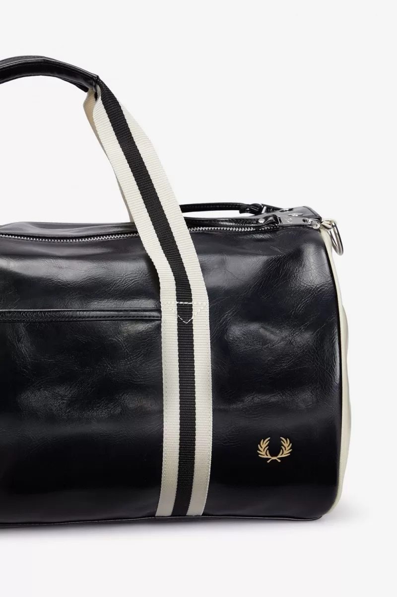 The classic Fred Perry barrel bag – designed in a range of colourways in durable PU. Featuring all its original details, with strong webbing handles and a zipped compartment at one end.