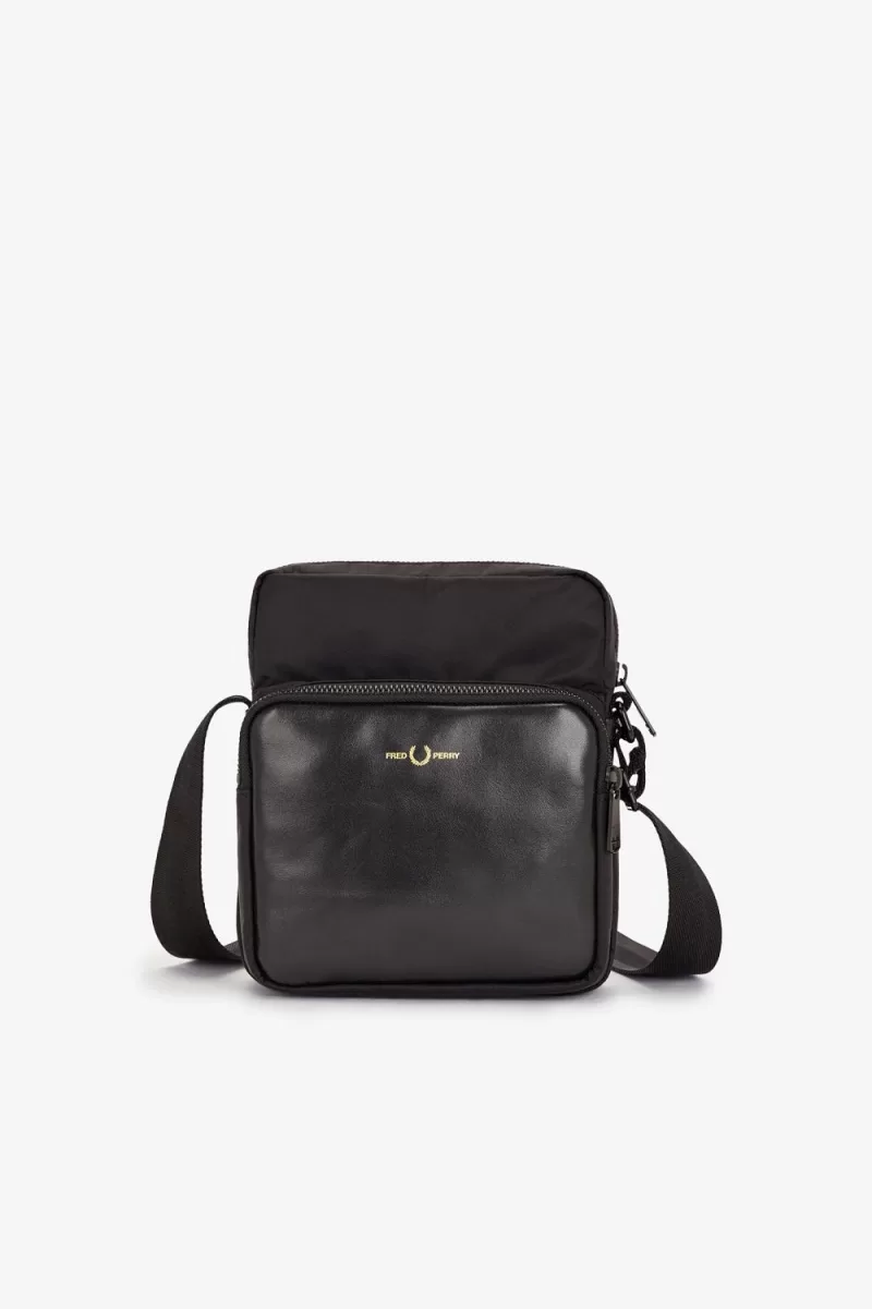Combining leather, tonal tipping, and tonal matt black hardware for a luxe look and feel, and featuring subtle Fred Perry graphic branding in gold foil, this is a solid side bag for elevating any outfit. With recycled branded lining and an internal zip pocket for your valuables.