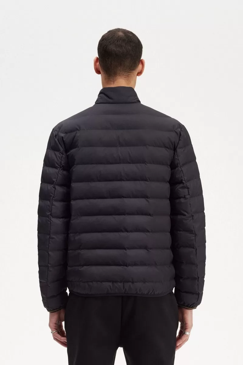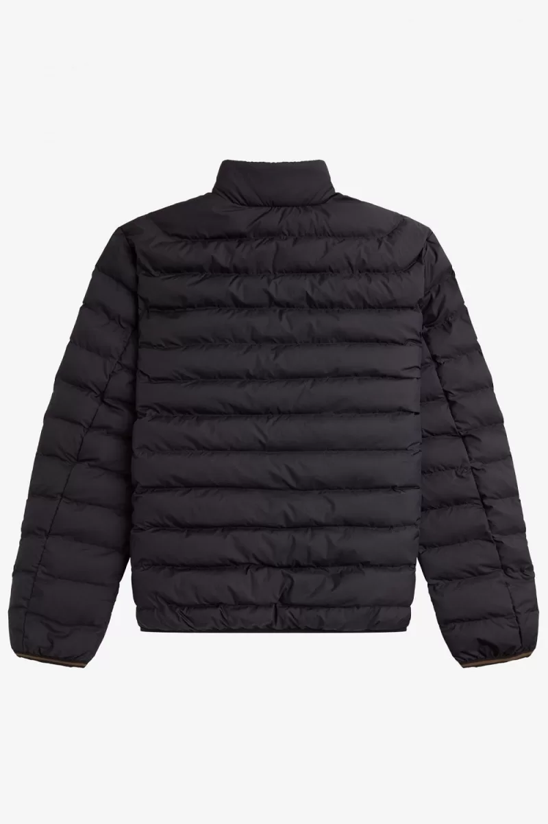 Our smart insulated jacket, constructed from a partially-recycled nylon ripstop, with horizontal quilting and twin tipping to the inside neck.