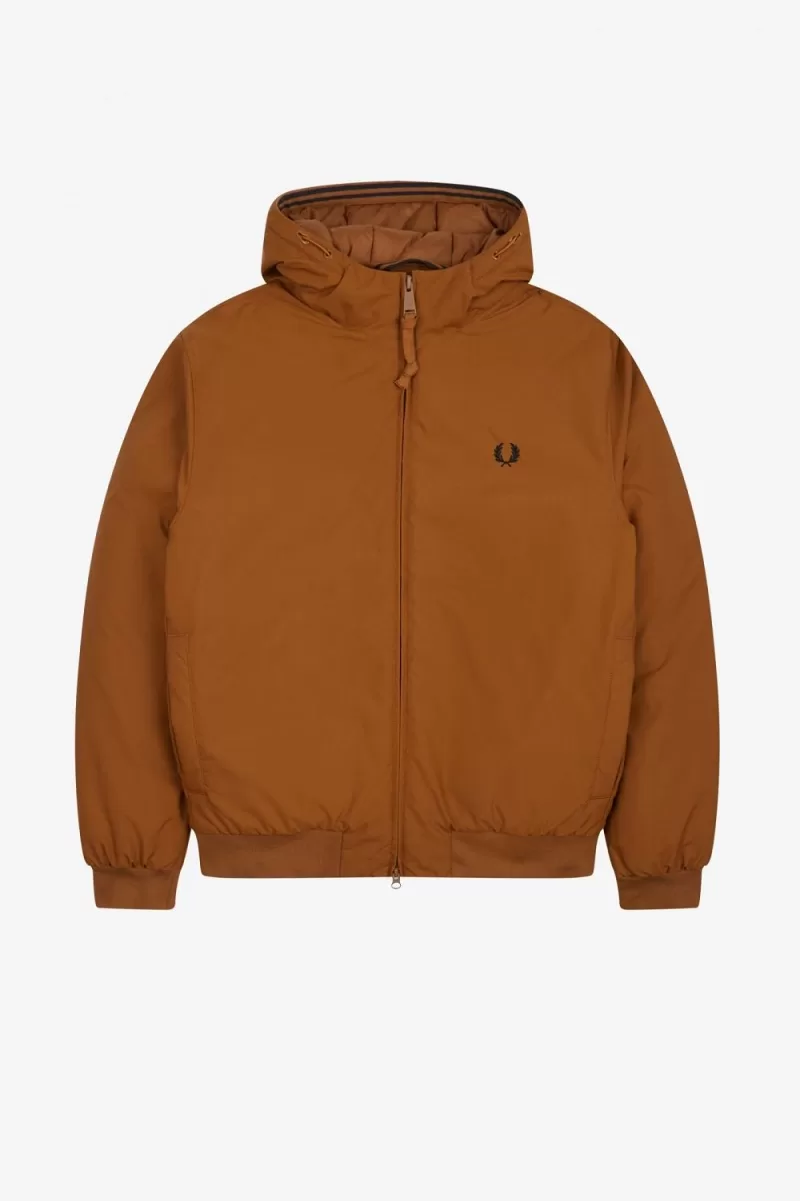 A padded nylon-twill sports jackets, designed with a hood, pockets and our signature twin tipping at the hem and cuffs.