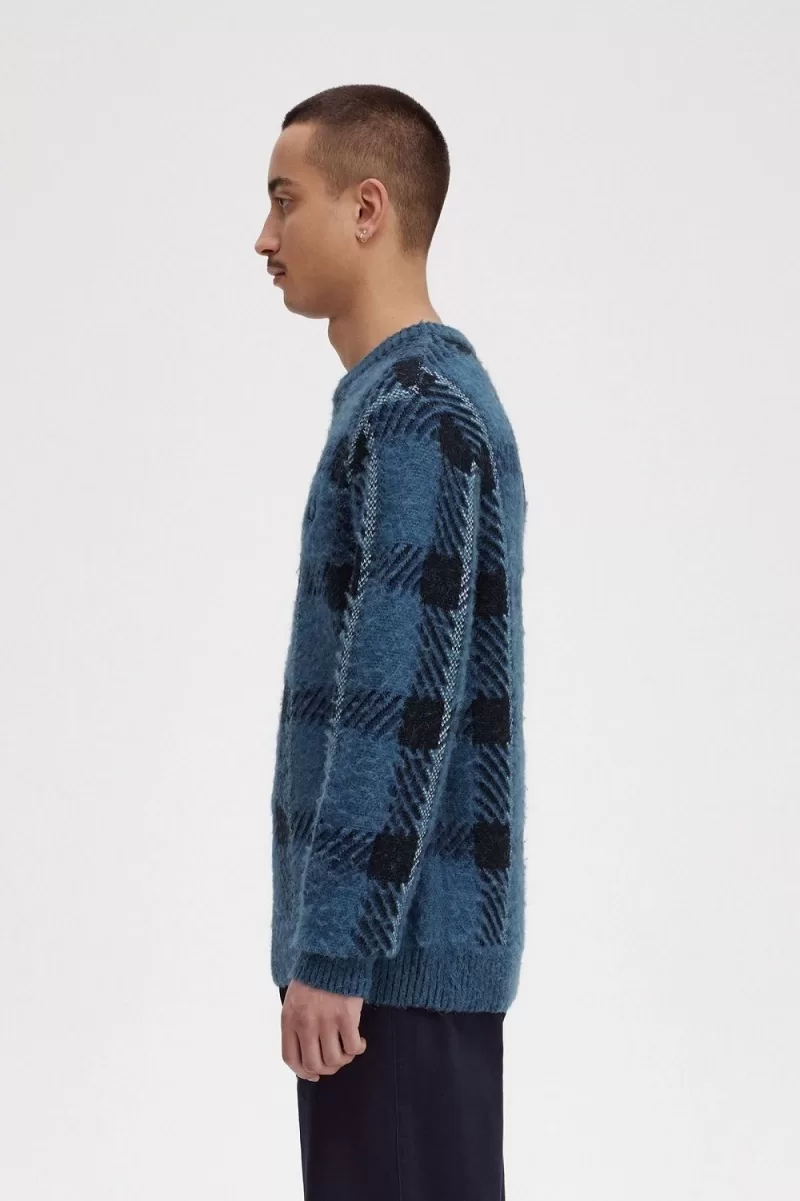 The Fred Perry brand has always represented those a little on the outside and slightly at the edges. Inspired by the slouchy mohair knits of the UK punk scene, our glitch tartan jumper blends luxe, textured fabrics in a bold jacquard pattern. Layer it over a neutral outfit for an injection of texture and colour – or even better, clash it with something even louder.