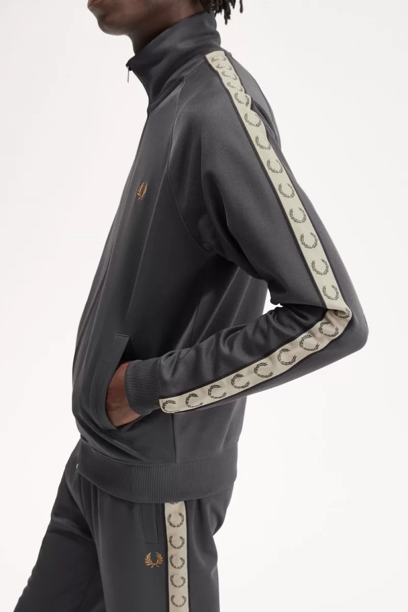 Inspired by the tricot track jacket that’s been around since the ‘70s, when the introduction of vivid colours and man-made fibres changed the way sport looked forever, our taped track pants feature Laurel Wreath track tape running down the leg seams. Made to match, and true to our sporting heritage.