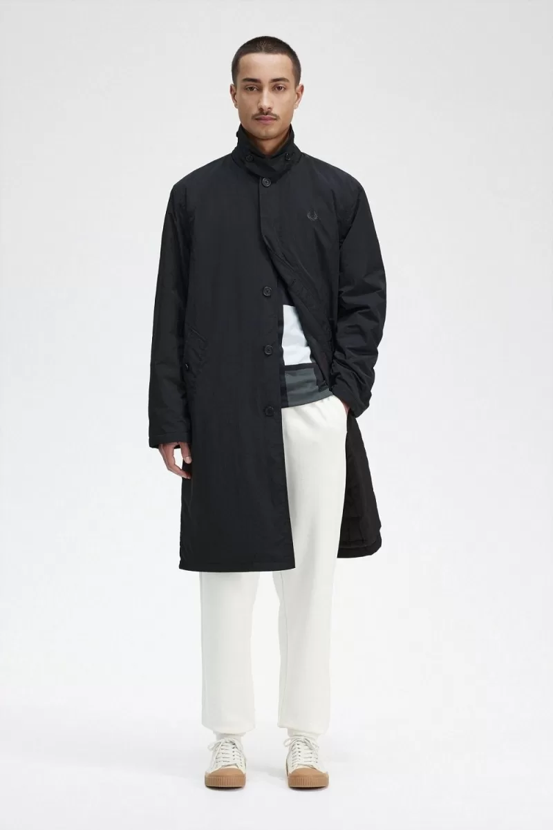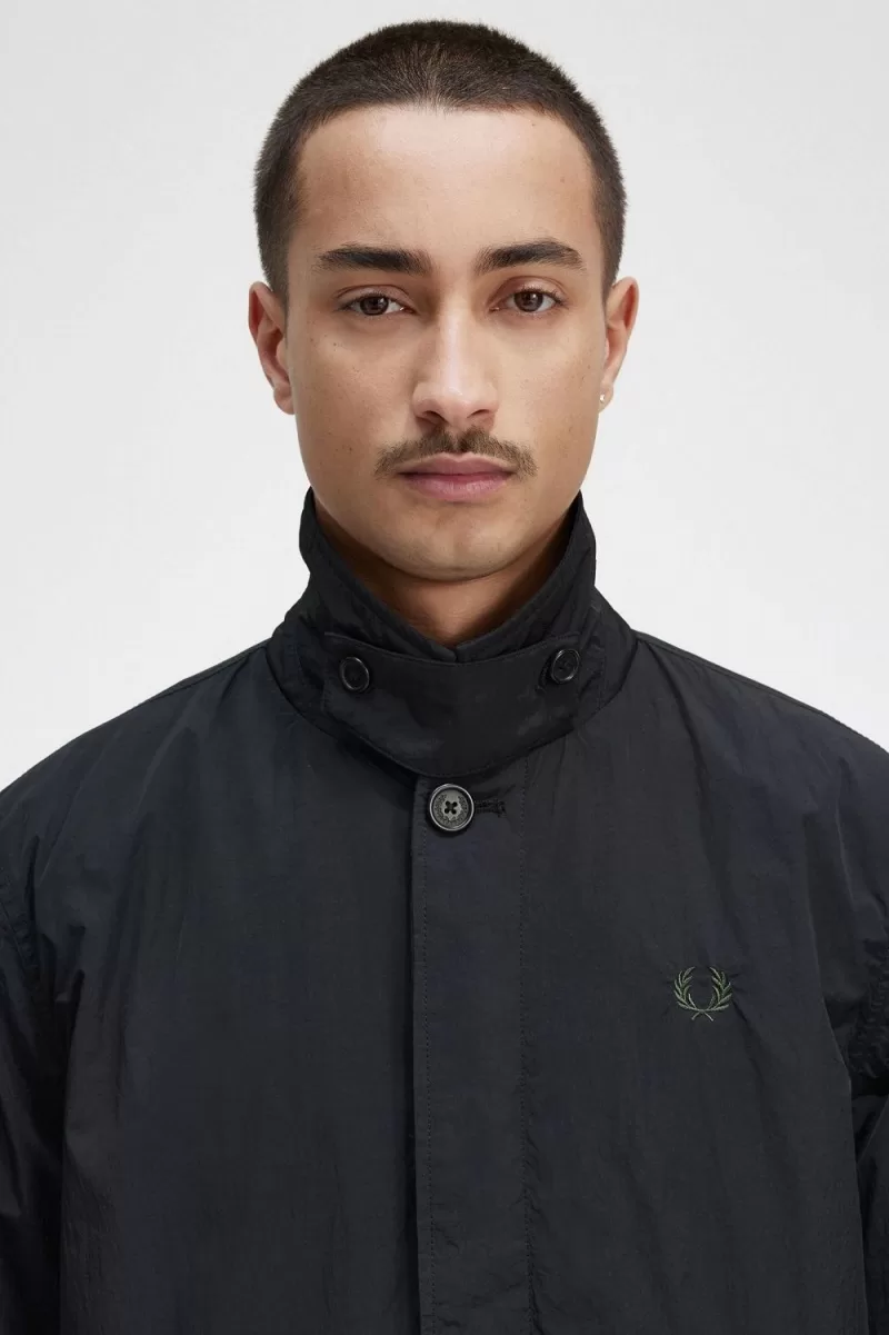 Fred Perry Button Through Mac Men’s Parka Black | VNOIW9105
