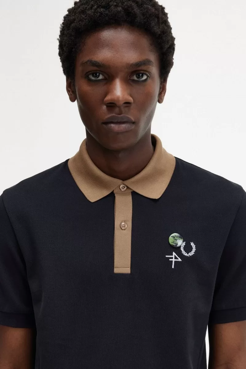 Raf Simons reinterprets familiar Fred Perry silhouettes with the sensibilities of his eponymous line and influenced by the clothes worn at raves, club nights and gigs. Inspired by his fascination with utilitarian uniforms and graphics taken from early industrial records of the late ‘70s, our latest Raf Simons collection is as at home on the floor of a techno rave as it is at a packed band show. Our polo shirt comes in a slim fit and features a contrast collar and placket, plus bespoke pin badges to the left chest. A reimagined classic, that combines conventional style with a rebellious spirit. To wear the Fred Perry x Raf Simons collection is to feel part of something – the power of youth and belonging.