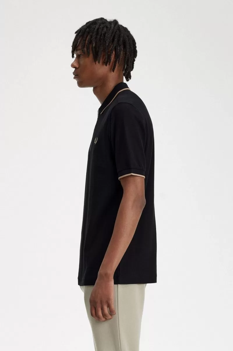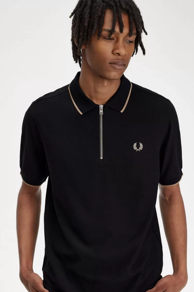 It all started with the Fred Perry polo shirt. This version feels sharp, light, and contemporary with a metal zip fastening in place of the usual button placket. Signed off with single tipping to the collar and cuffs, and the embroidered Laurel Wreath where you’ll always find it.