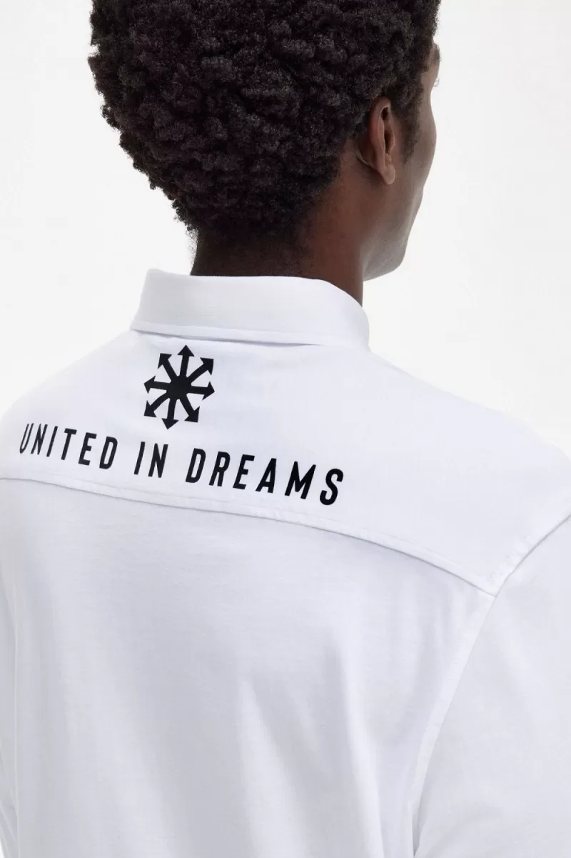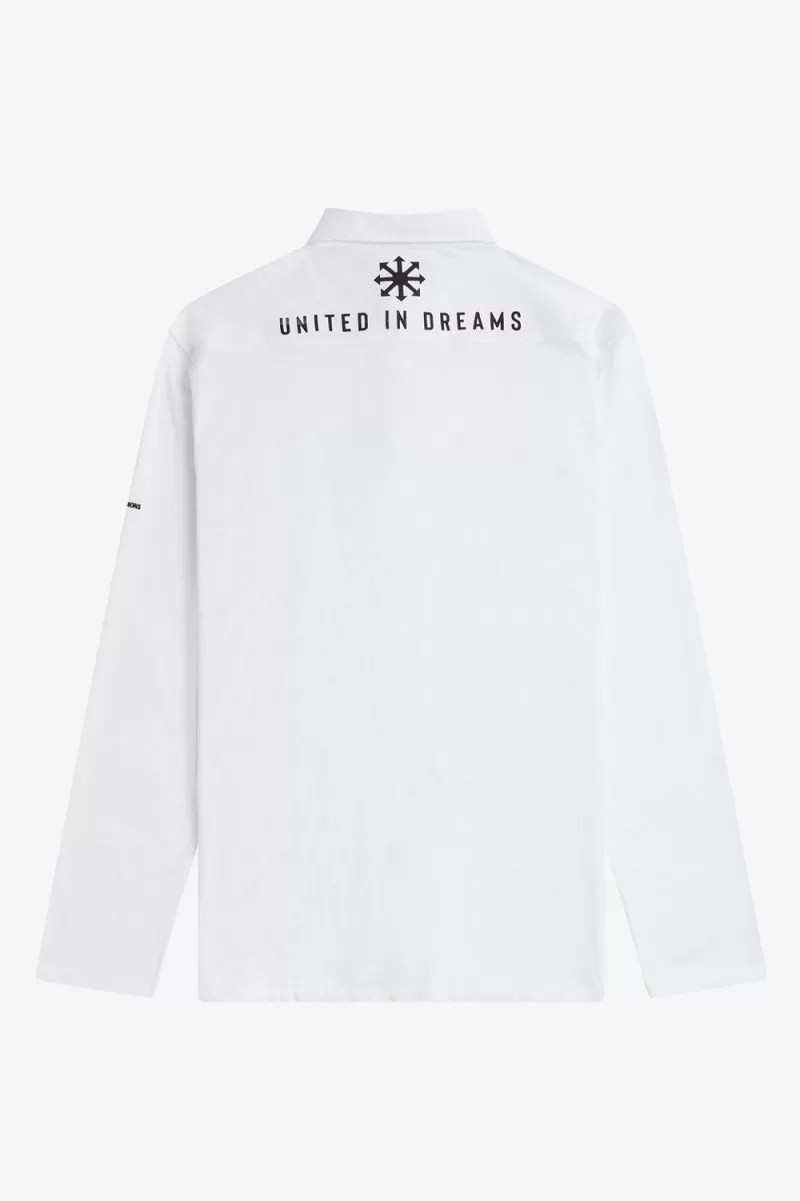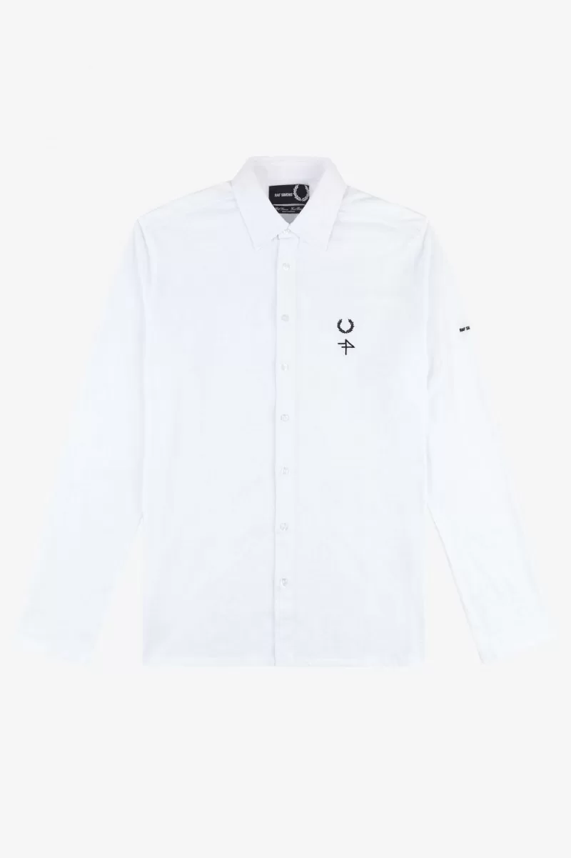 Raf Simons reinterprets familiar Fred Perry silhouettes with the sensibilities of his eponymous line and influenced by the clothes worn at raves, club nights and gigs. Inspired by his fascination with utilitarian uniforms and graphics taken from fictional early industrial records of the late ‘70s, our latest Raf Simons collection is as at home on the floor of a techno rave as it is at a packed band show. Our shirt is crafted from a cotton jersey and features a graphic print to the back body, a bespoke logo created by Raf Simons’ to the left chest and our signature Laurel Wreath embroidery. A reimagined classic, that combines conventional style with a rebellious spirit. To wear the Fred Perry x Raf Simons collection is to feel part of something – the power of youth and belonging.