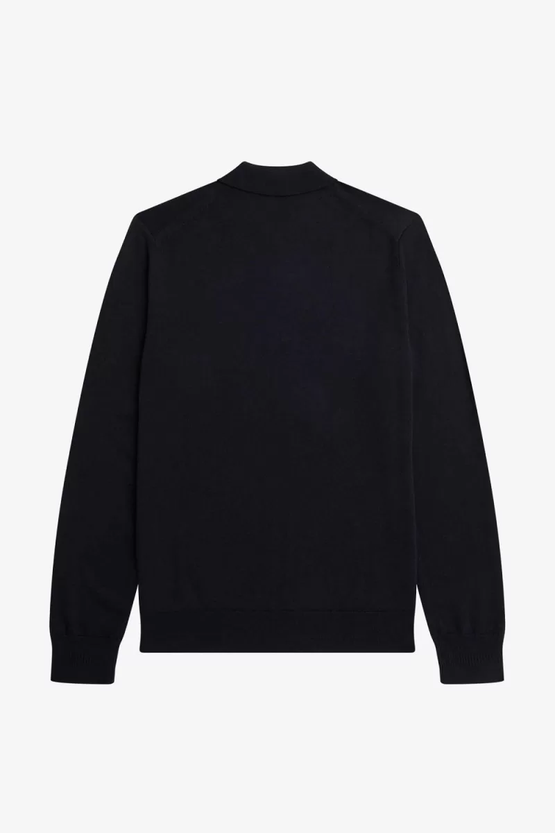 A long sleeve knitted shirt in a fine gauge merino wool blend.
