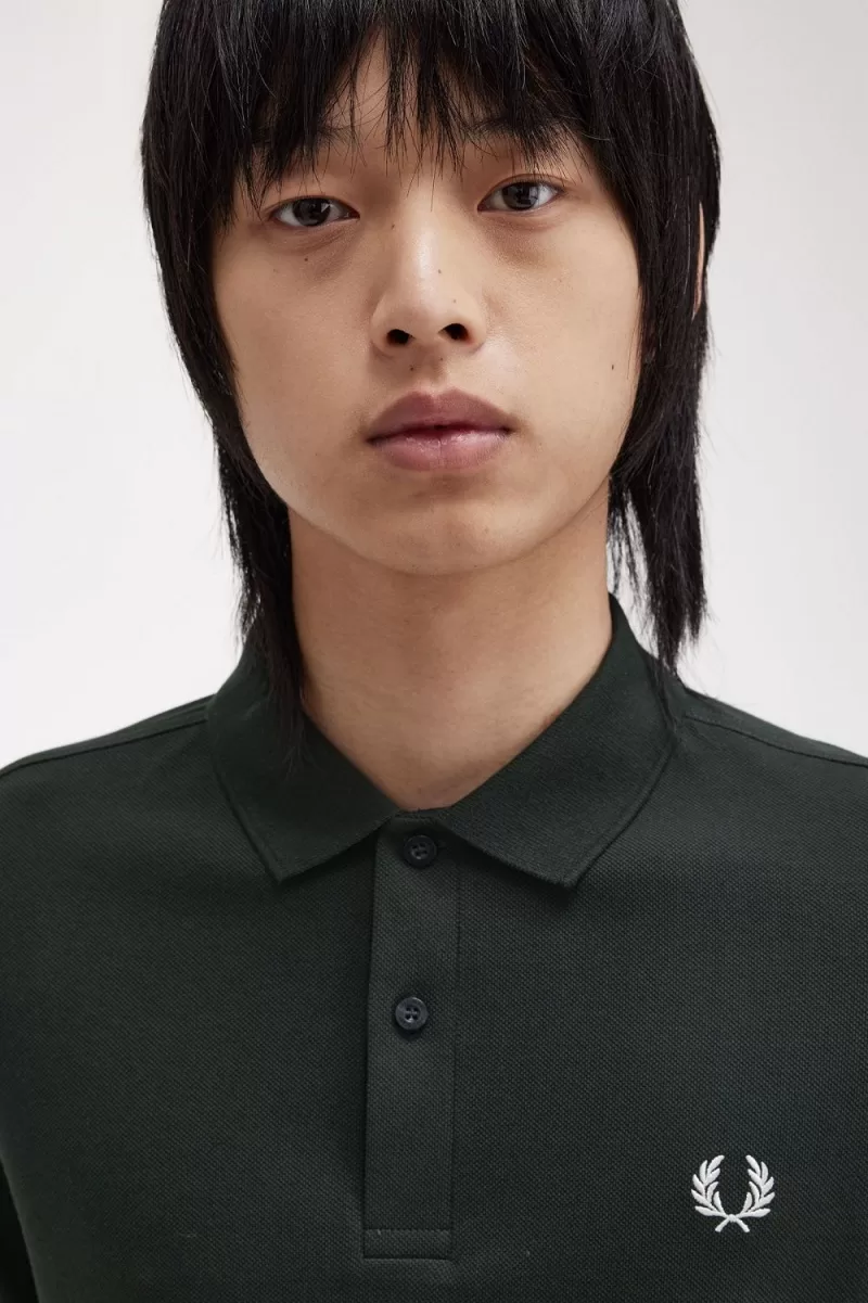 Fred Perry M6000 Men’s Shirt Night Green Snow White | HUZYV6127