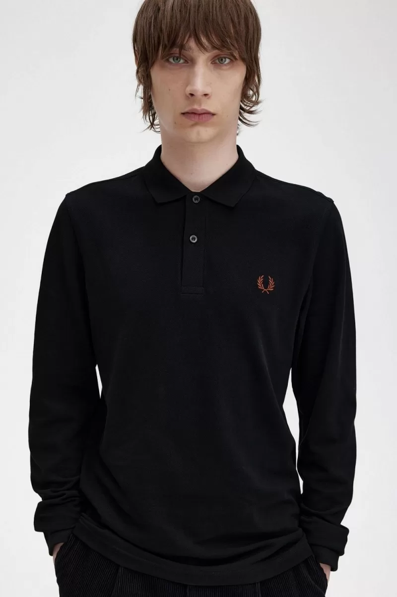 Fred Perry M6006 Men’s Shirt Black Whisky Brown | MAVFG2073