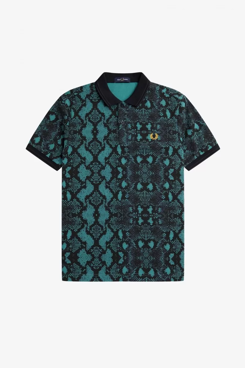 A classic Fred Perry shirt with a not-so-classic all over snakeskin print.