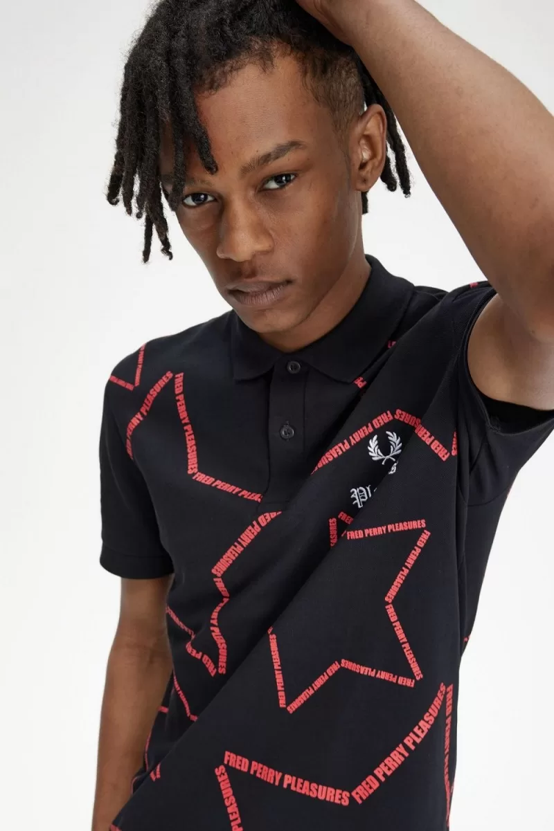 U.S. lifestyle brand Pleasures put their stamp on the Fred Perry shirt, inspired by the Los Angeles punk scene. Made in our signature fit and cotton pique, with graphic star print and dual branding embroidery at the chest.