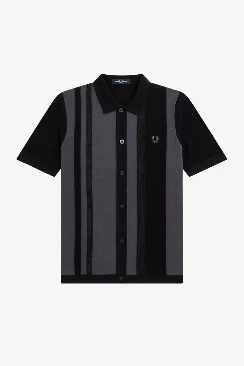 Fine gauge combed cotton knit / Classic fit / Piqué and mesh vertical stripe detailing to the front / Button through placket / Laurel Wreath embroidered logo on the left hand chest