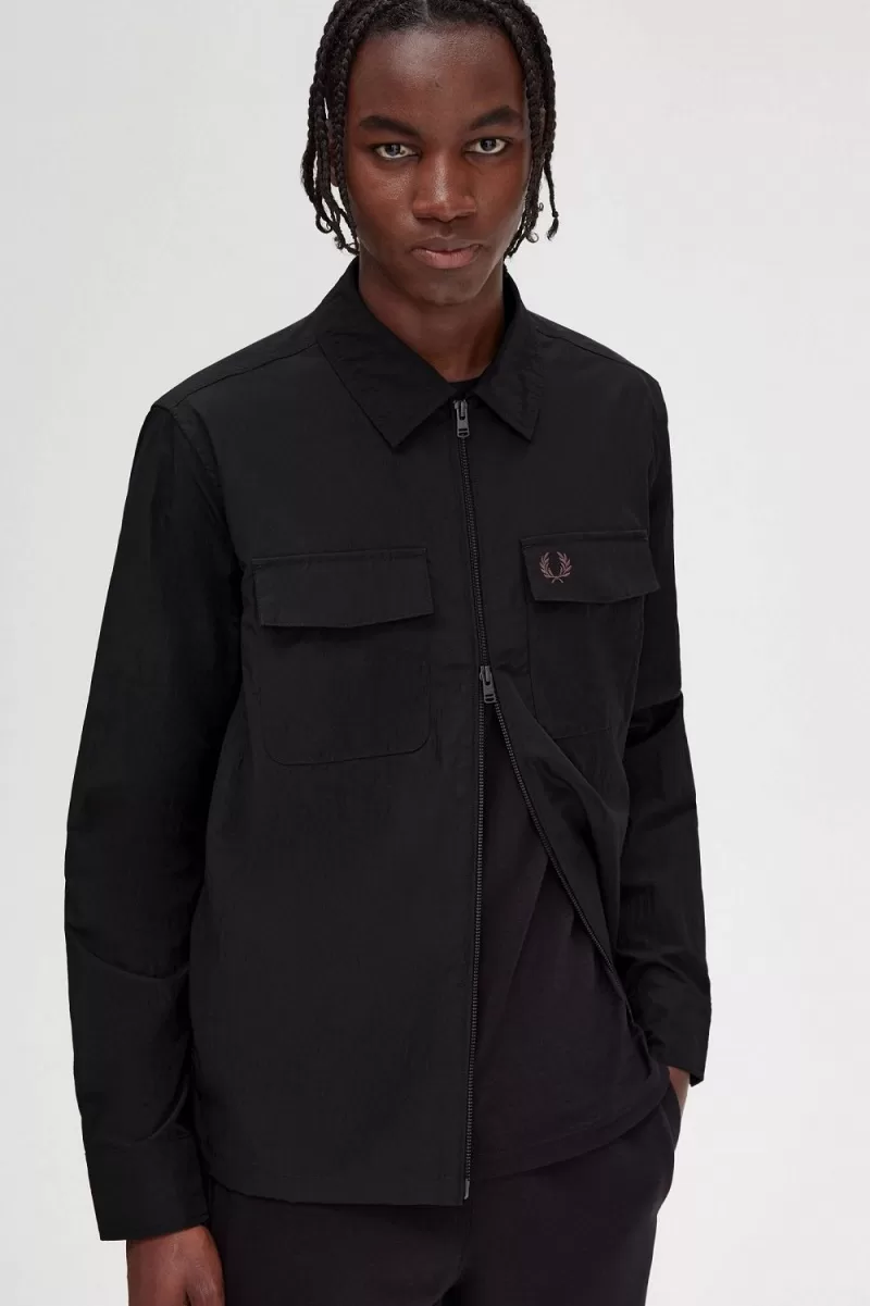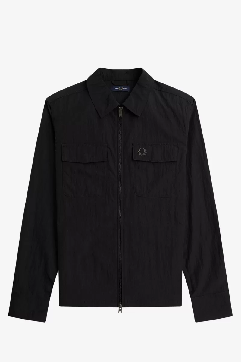 A zip through overshirt with a soft, crinkle-effect hand feel.