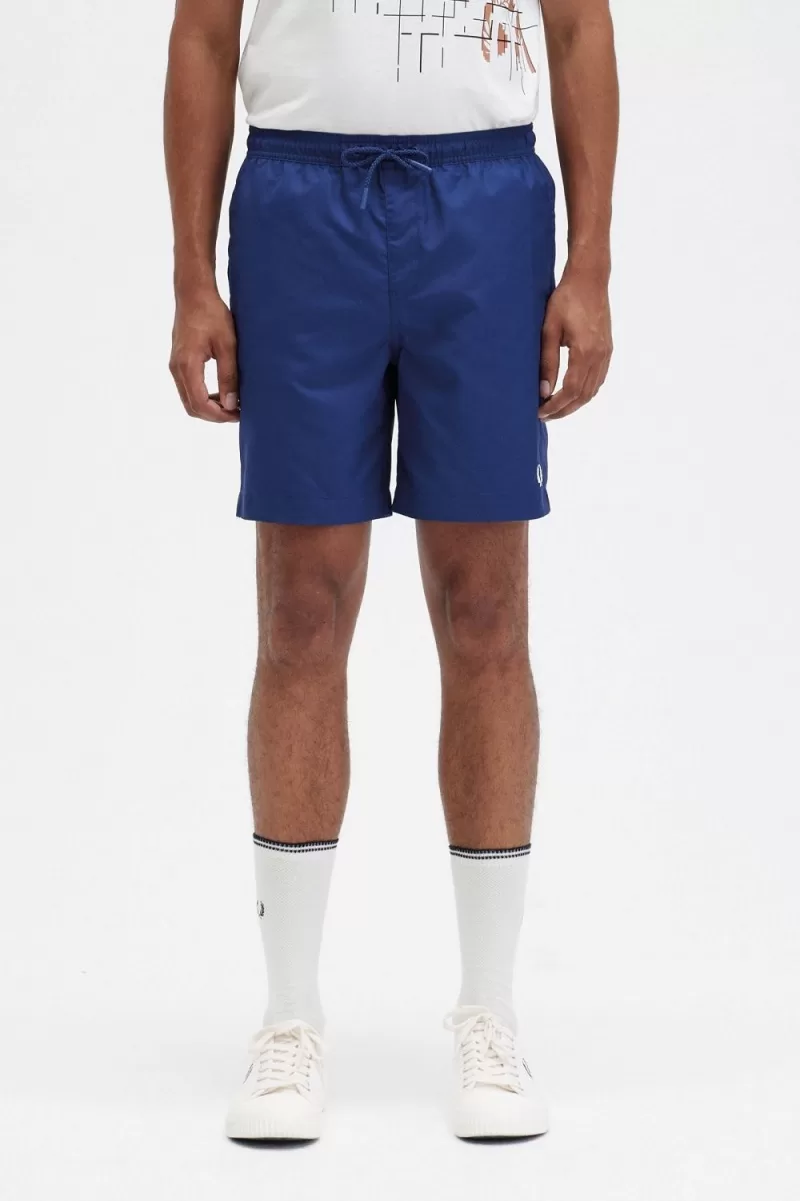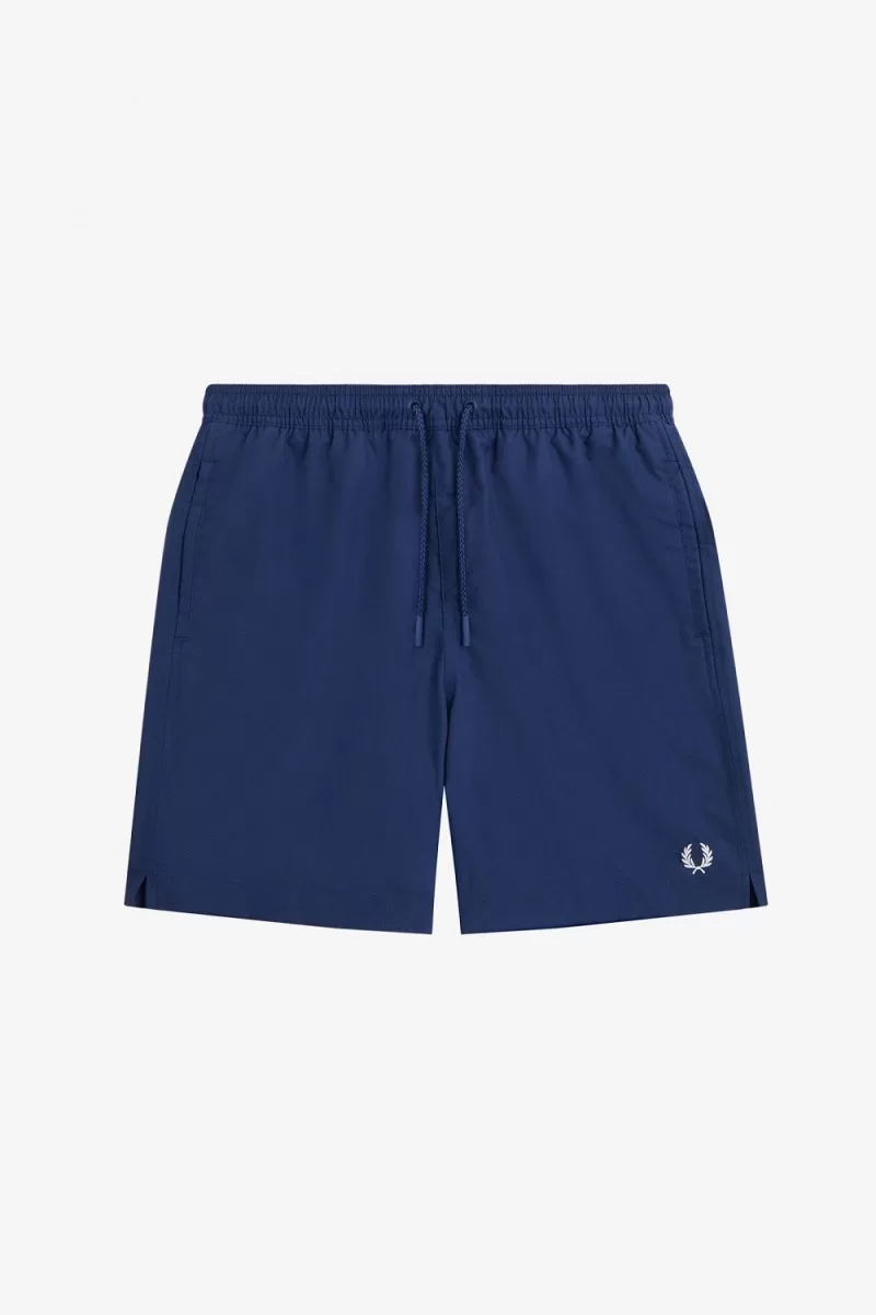 Nylon swimshort fabric with dobby texture / Elasticated waistband with drawcord / Mesh lining / Embroidered Laurel Wreath logo