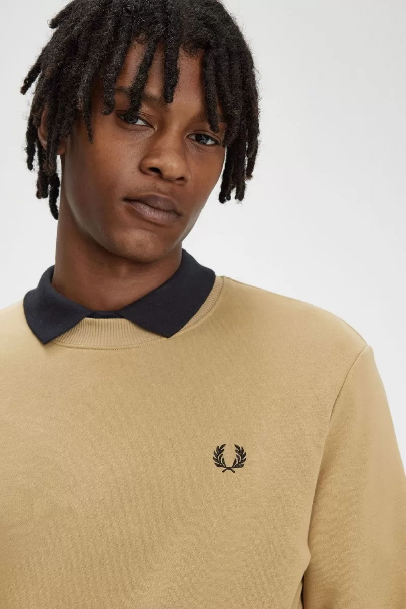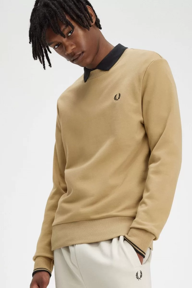 Adopted by sportsplayers in winter training sessions, the cotton sweatshirt is a time-honoured classic. Our crew neck sweatshirt features subtle Fred Perry design details, with tipping at the cuffs and the ever-present Laurel Wreath embroidered proudly on the chest. Built for layering.