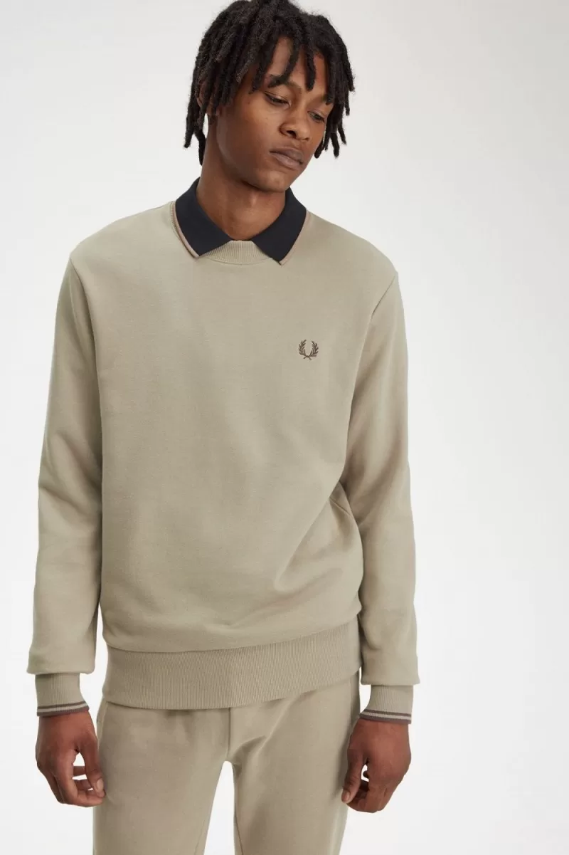 Fred Perry Crew Neck Men’s Sweatshirts Warm Grey Dark Red | WKIRL1340