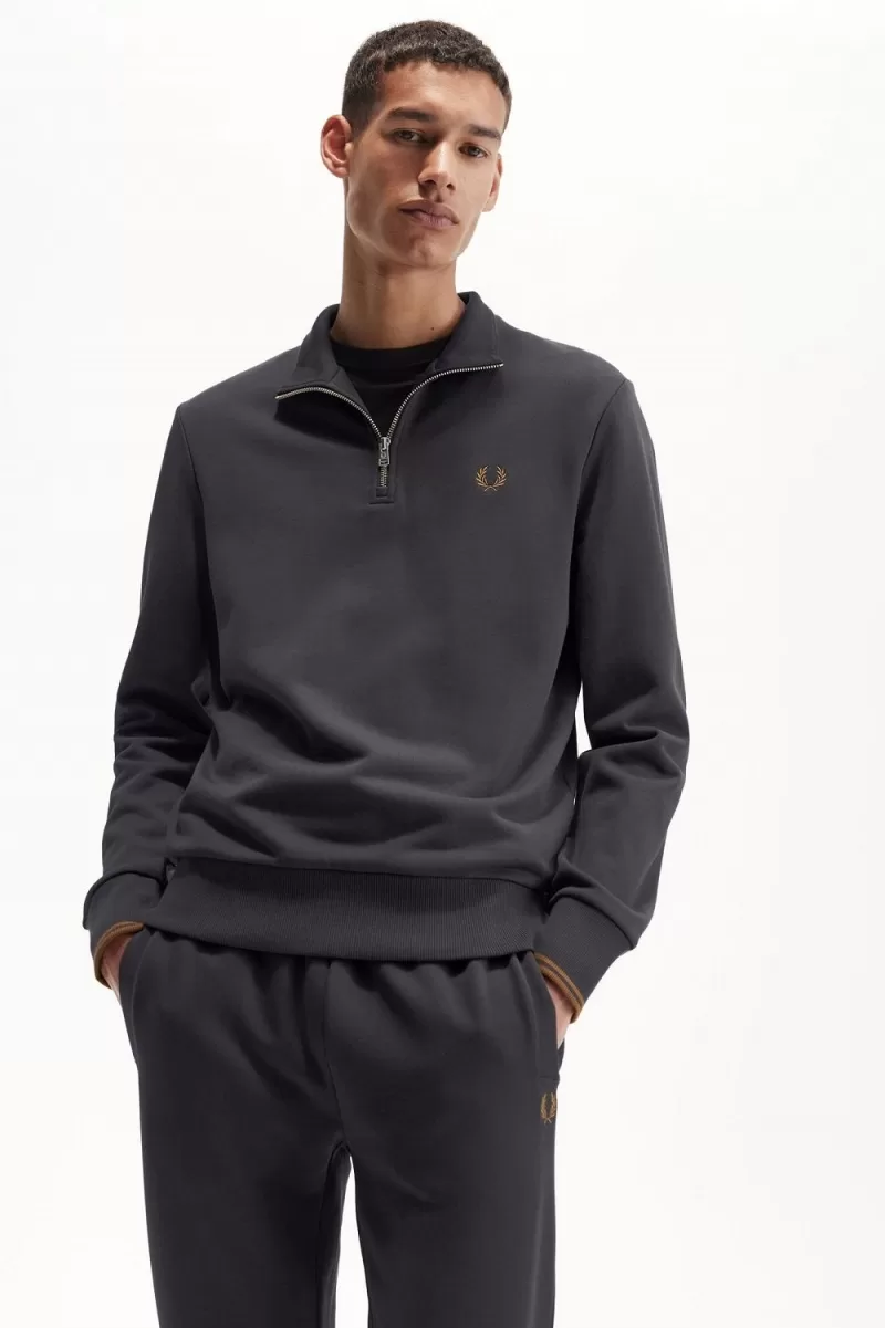 Home Fred Perry Men Fred Perry Men Clothing Fred Perry Men Clothing Sweatshirts Fred Perry Half Zip Men’s Sweatshirts Anchor Grey Dark Coffee | POLXB5109