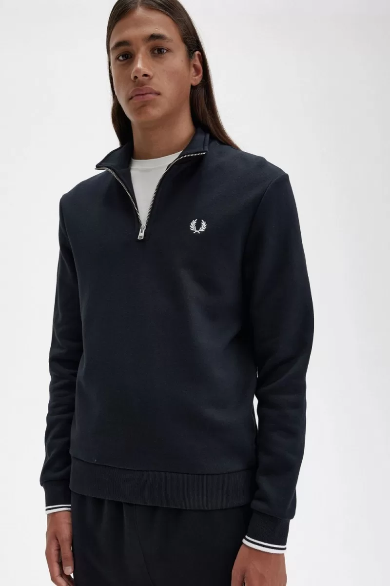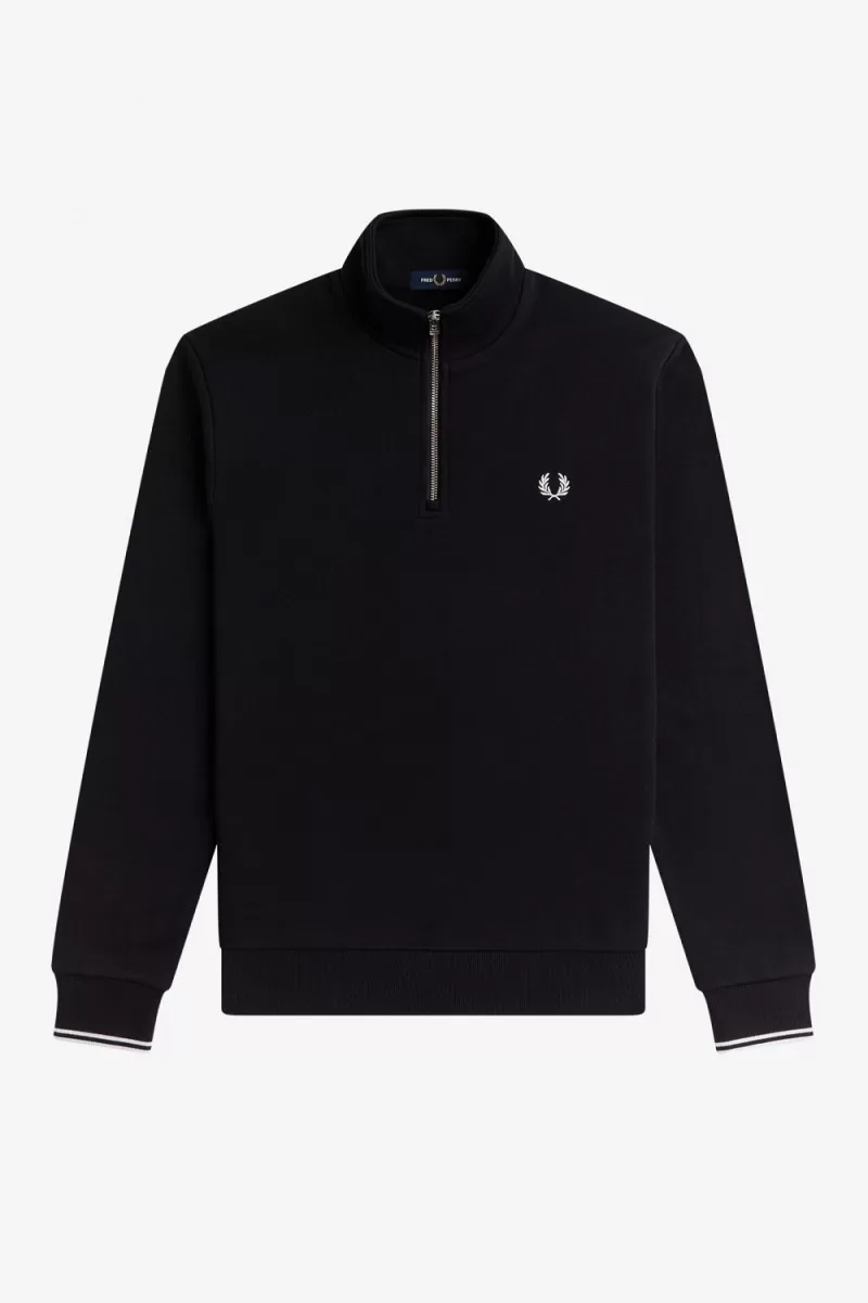 A stripped back Half Zip sweatshirt constructed from a cotton-rich blend and featuring signature Fred Perry detailing.