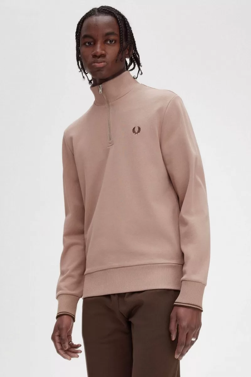 Our cotton funnel neck half-zip with twin tipping to the sleeves.