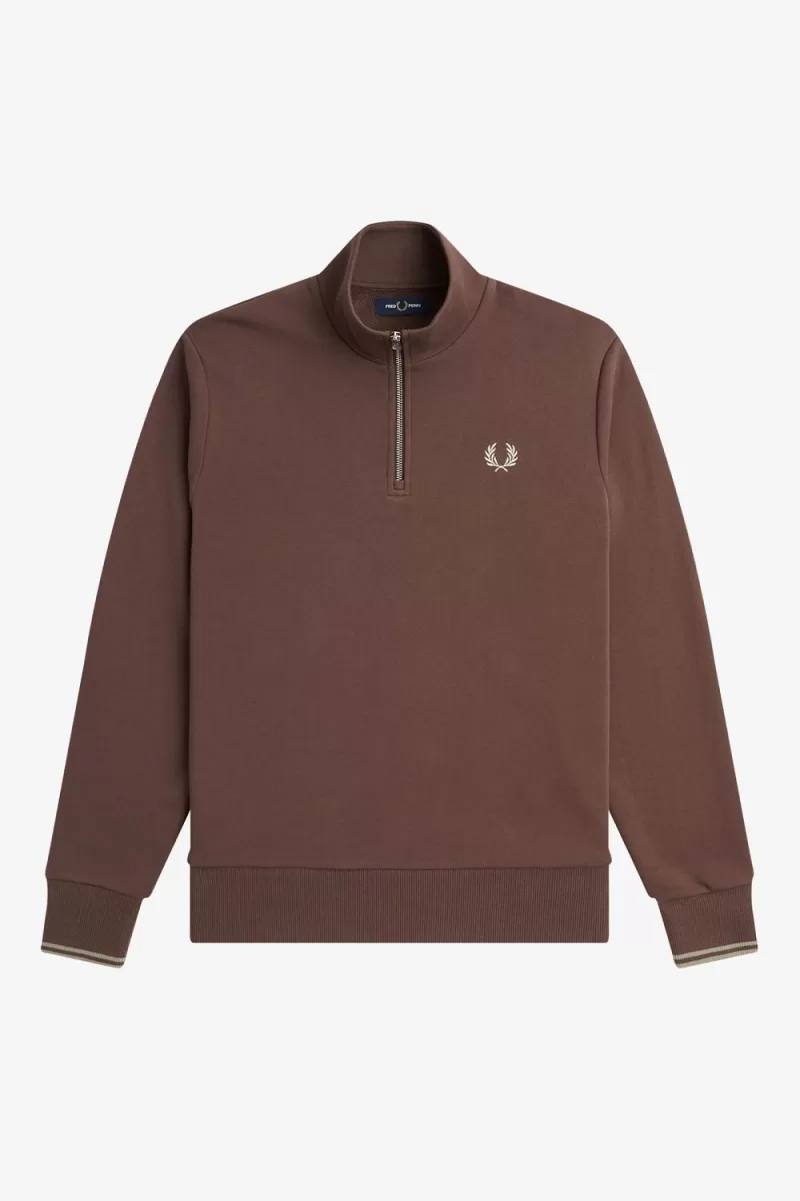Fred Perry Half Zip Men’s Sweatshirts Dark Red Warm Grey | LZGQO2318