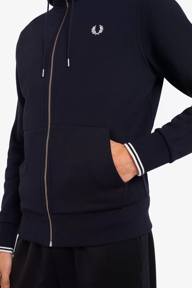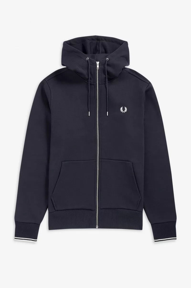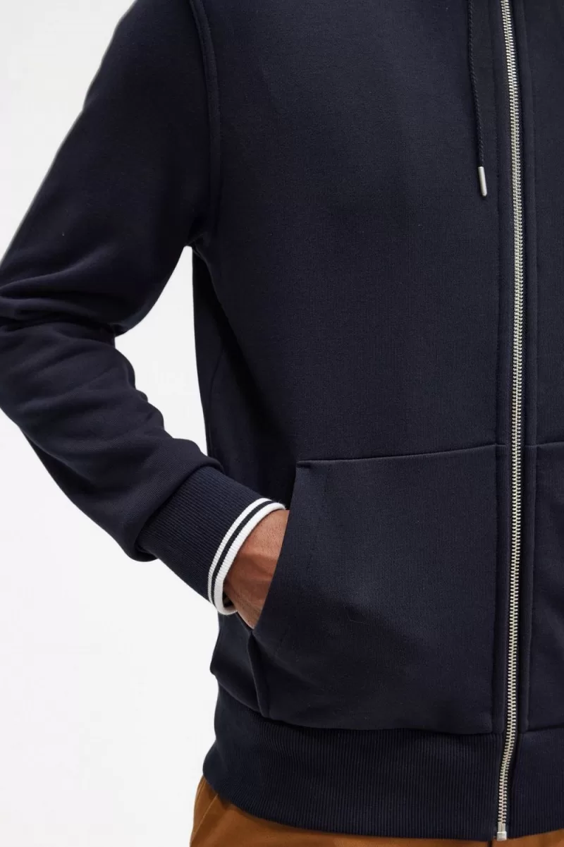 A zip-through sweatshirt in cotton-blend loopback. Trimmed with contrast tipping at the cuffs.