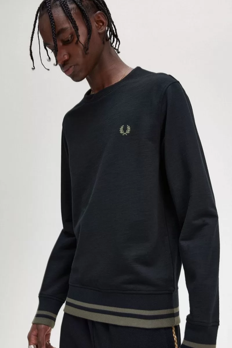 Home Fred Perry Men Fred Perry Men Clothing Fred Perry Men Clothing Sweatshirts Fred Perry Rib Detail Men’s Sweatshirts Black | GSXJQ1362