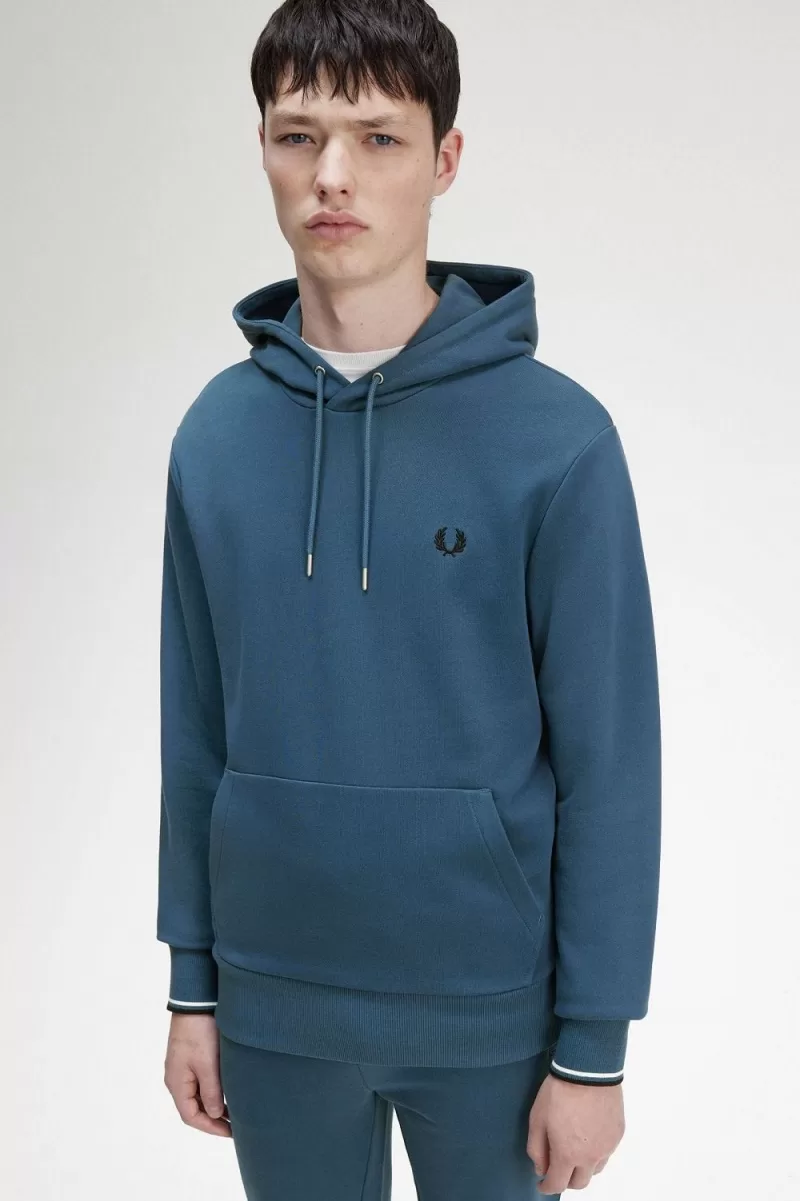 Legend has it our twin tipping came about when a buyer from Lillywhites wanted football team colours added to Fred’s plain tennis shirt. Our unique 5-4-4 ratio tipping is part of our DNA. Keeping true to those signature details, our hooded sweatshirt features twin tipping on every cuff and contrast Laurel Wreath embroidery on the chest. Very Fred Perry.