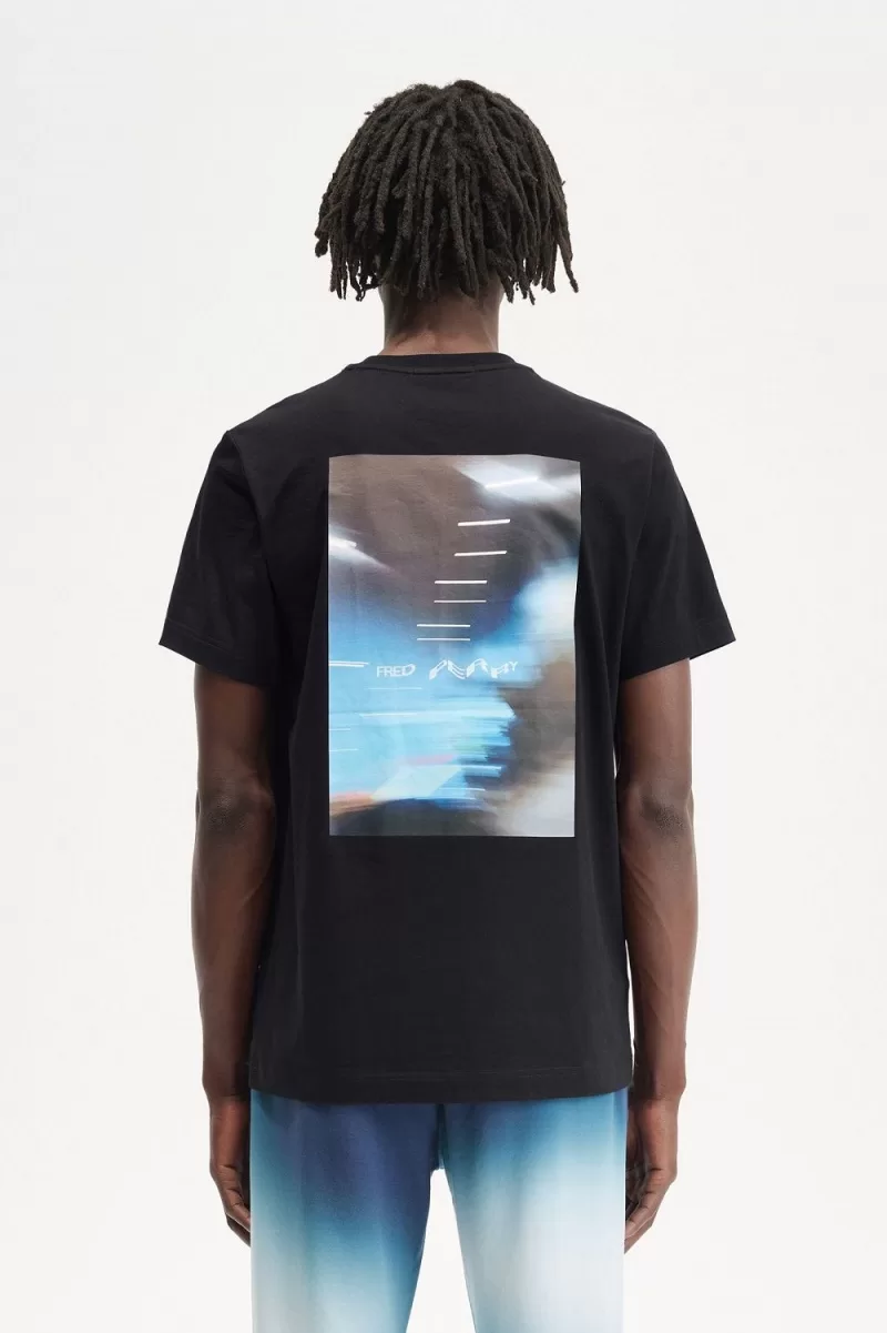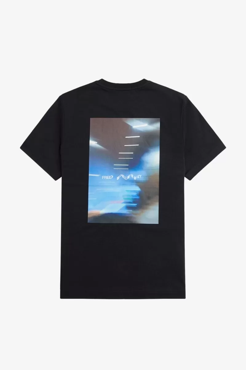 Our abstract t-shirt places digitally printed graphic art on a background of heavy cotton and block colour. Stirring up hazy memories of DIY photography on nights out – bleached and distorted film, low-res shots of nights long-forgotten and hazy memories of festivals, raves, gigs and holidays, immortalised in washed-out photos.