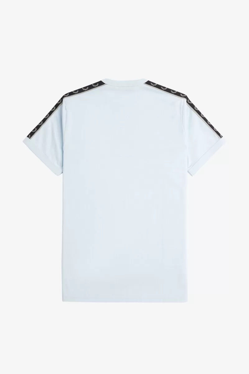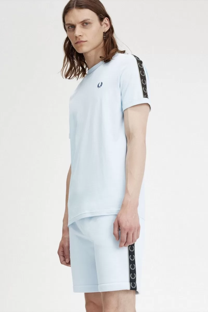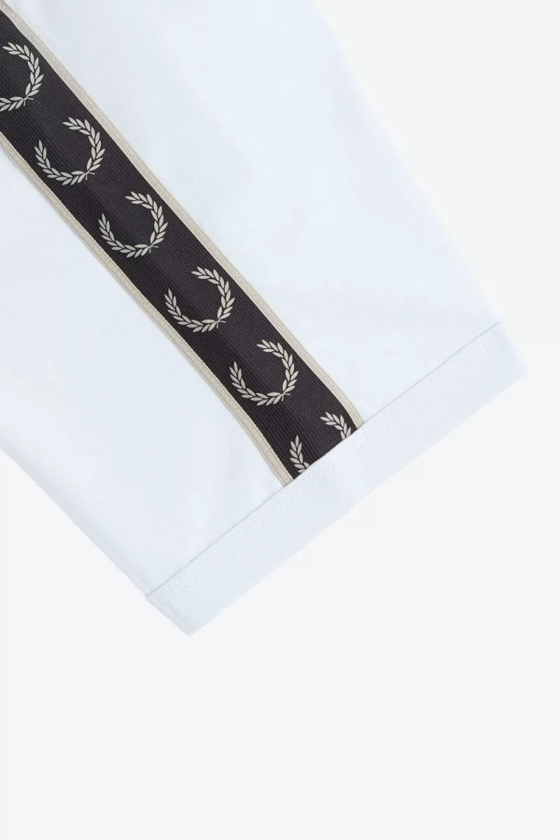 Our ringer t-shirt hasn’t changed much in the 50 years since its original design. This one features a Fred Perry staple – branded track tape to the shoulder and sleeve, a functional sporting detail used through the decades to protect seams and express team logos and colours.