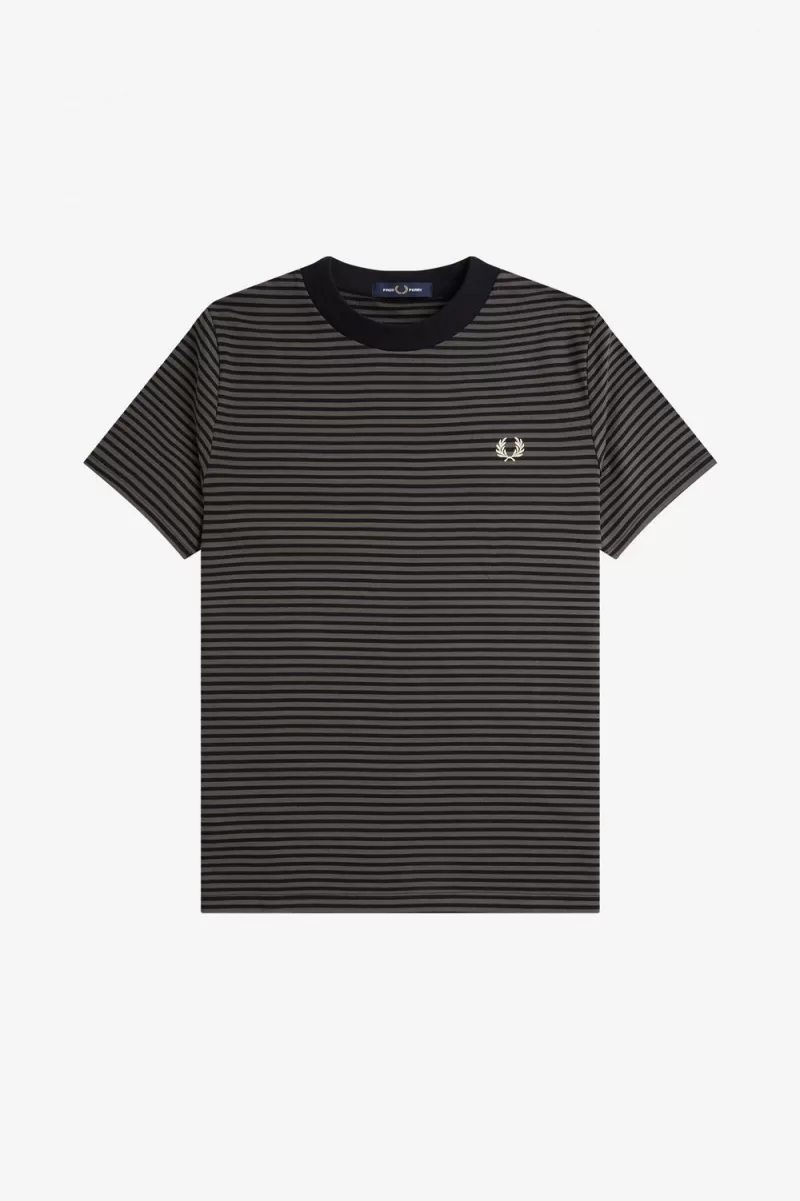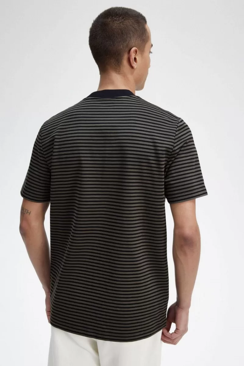 Fred Perry Fine Stripe Heavyweight Men’s T-Shirt Black Field Green | TZKBD8395
