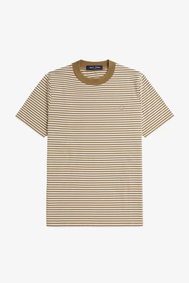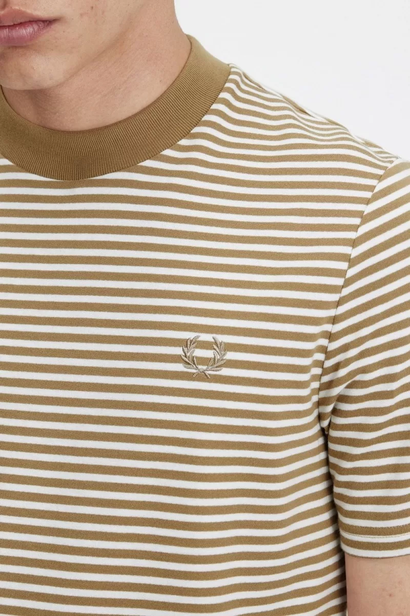 Fred Perry Fine Stripe Heavyweight Men’s T-Shirt Snow White Green | VMWKB8067