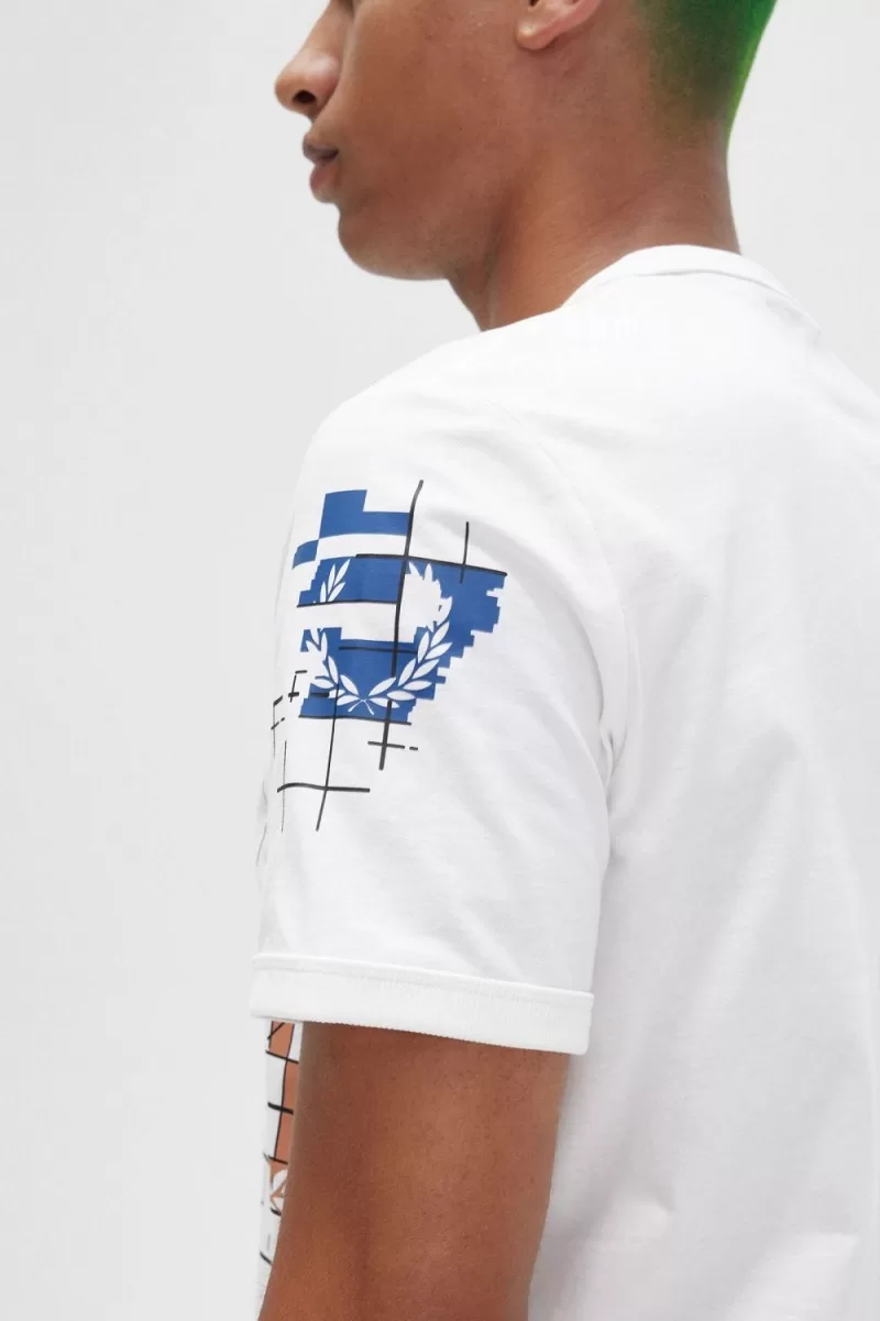 Fred Perry Grid Print Men’s T-Shirt Snow White | NCOWG1024
