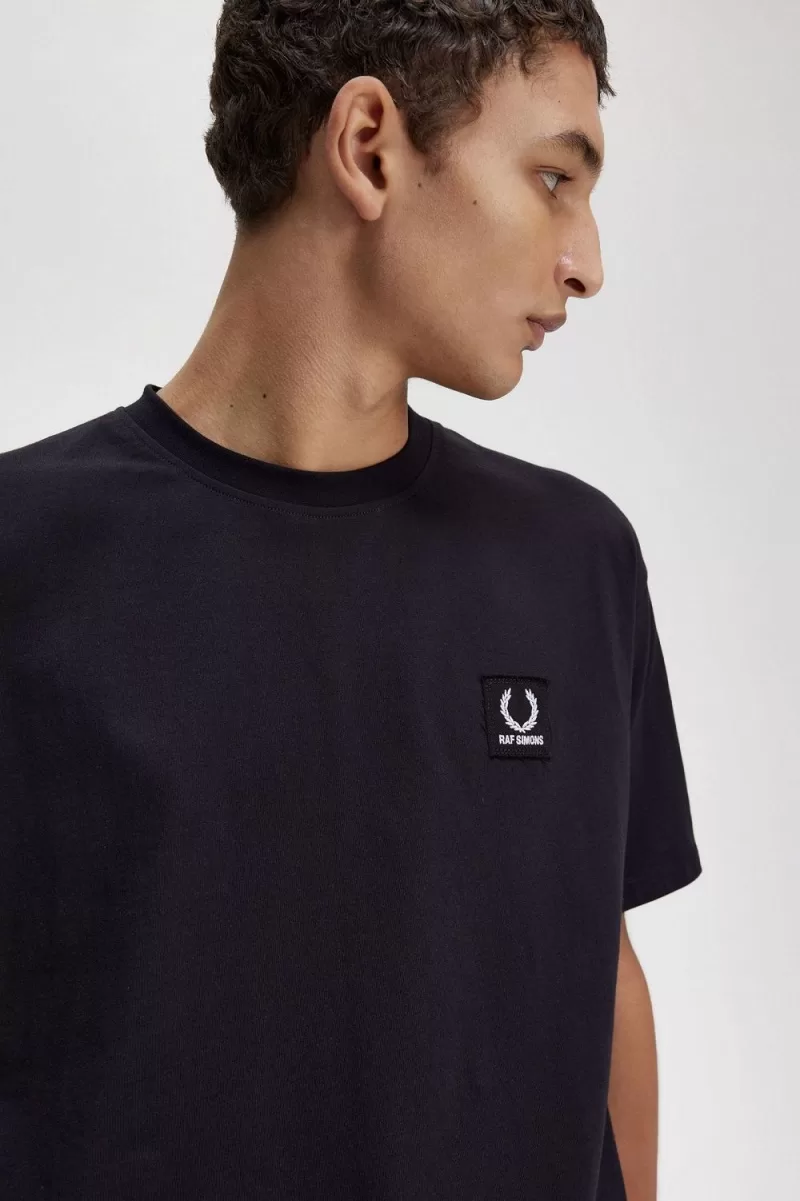 We collaborate with Raf Simons on a cotton jersey t-shirt with bespoke graphic lettering and a dual branded patch.