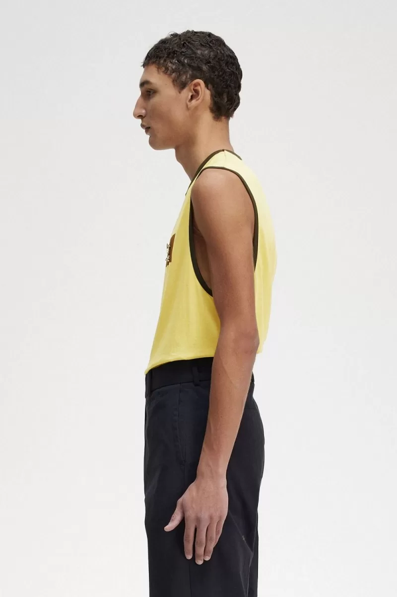 Fred Perry Printed Vest Men’s T-Shirt Dirty Lime | YGEFQ3620