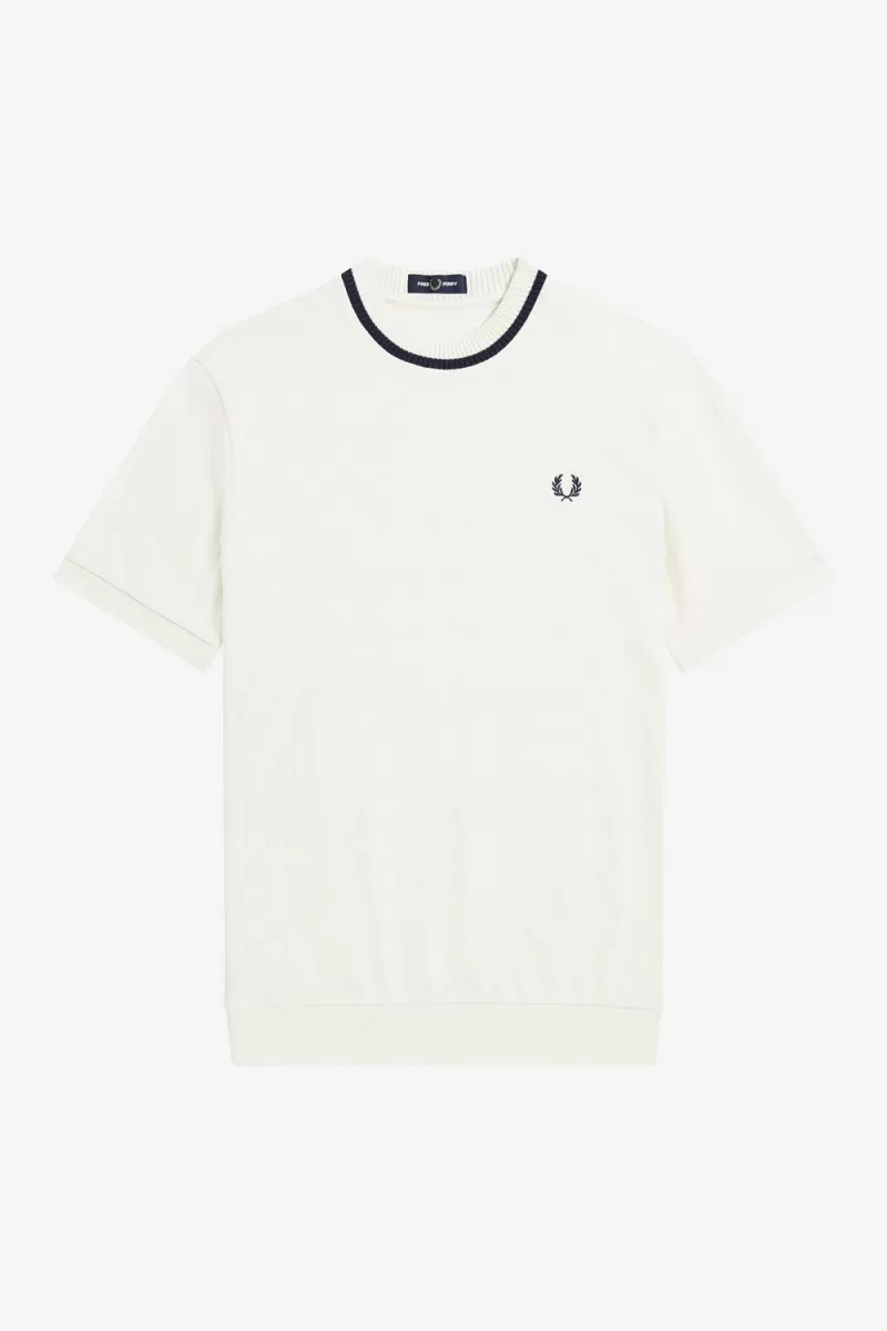 Made in Portugal / Refined cotton piqué / High crew neck / Chunky ribbed hem and neck / Single tipping