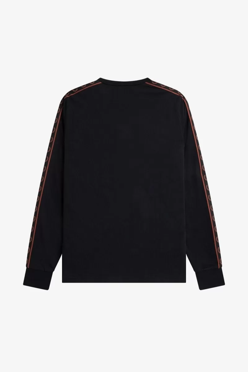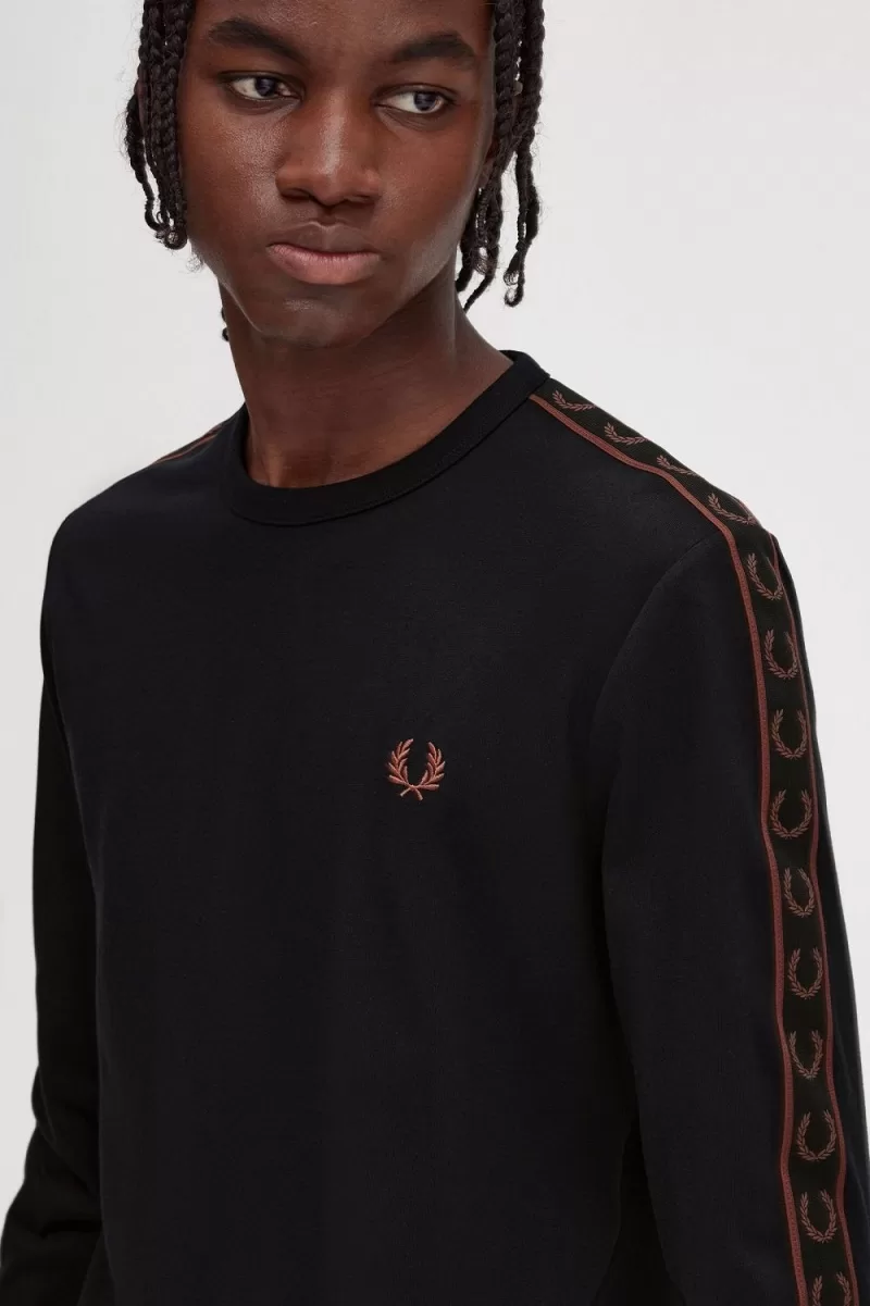 Fred Perry Taped Long Sleeve Men’s T-Shirt Black Whisky Brown | SUTCO7652