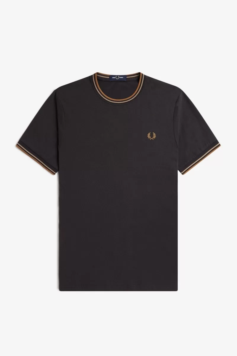 Fred Perry Twin Tipped Men’s T-Shirt Anchor Grey Green Dark Coffee | GNKJD6213