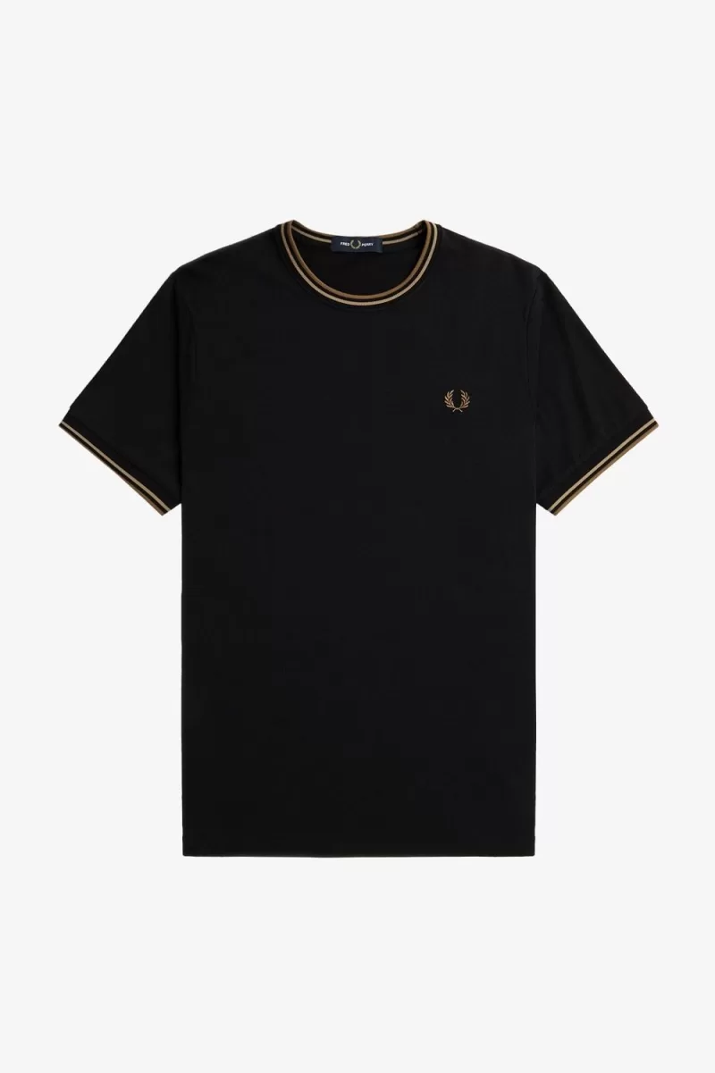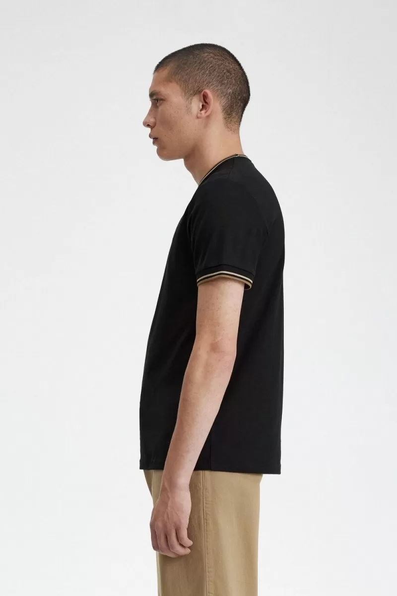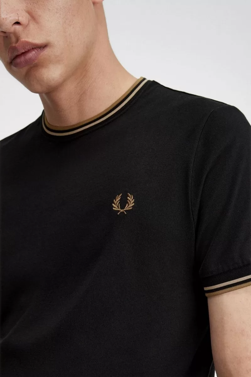 Fred Perry Twin Tipped Men’s T-Shirt Black Green Brown | JLIVD0639