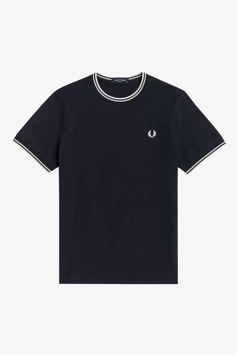 Legend has it, our twin tipping came about when a buyer from Lillywhites requested the addition of football team colours to Fred’s plain-colour tennis shirt. Only we use tipping in the ratio 5-4-4 and it’s a part of our DNA. Designed with our signature detailing, our crew neck t-shirt features twin tipping and colour-matched Laurel Wreath embroidery. Very very Fred Perry.