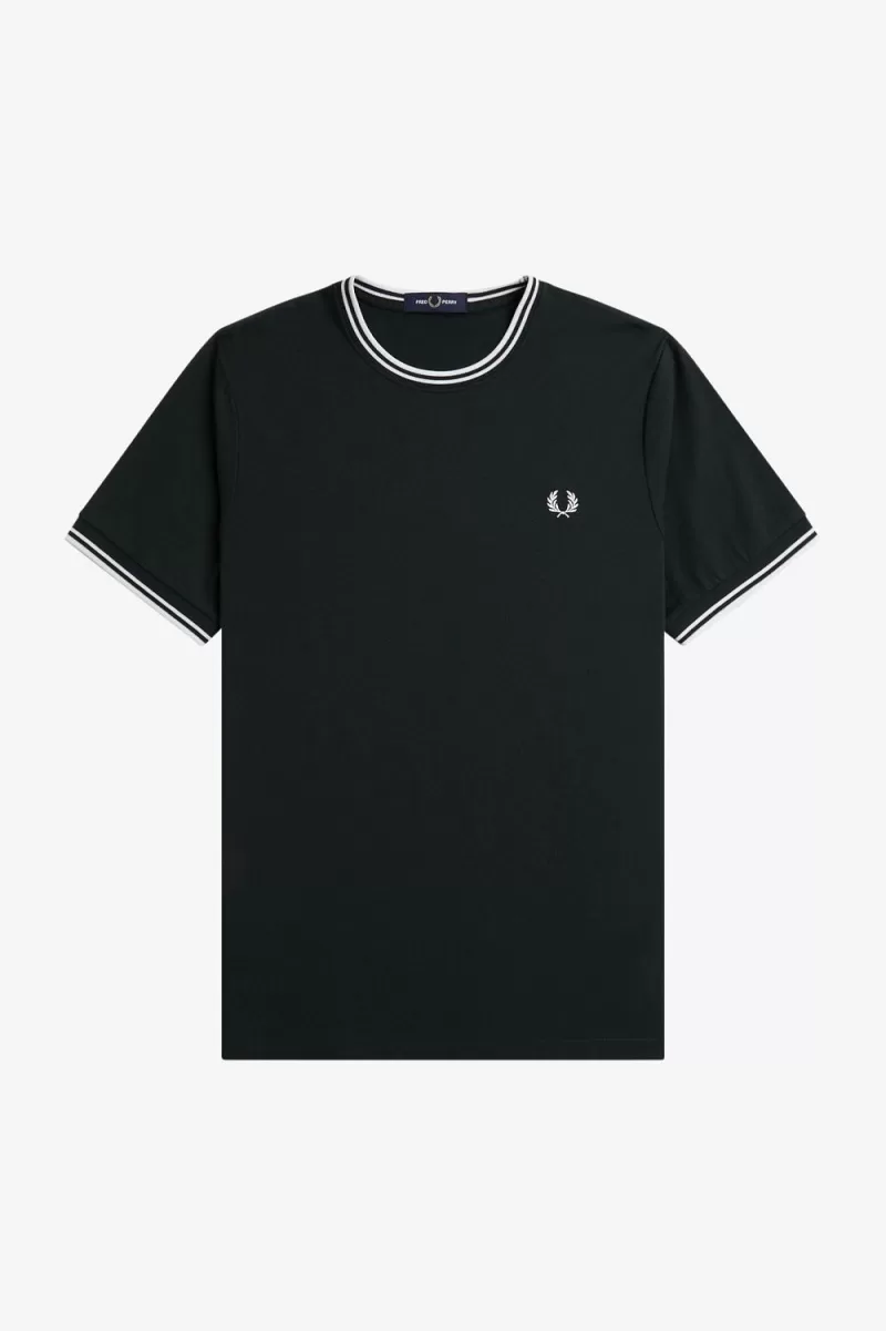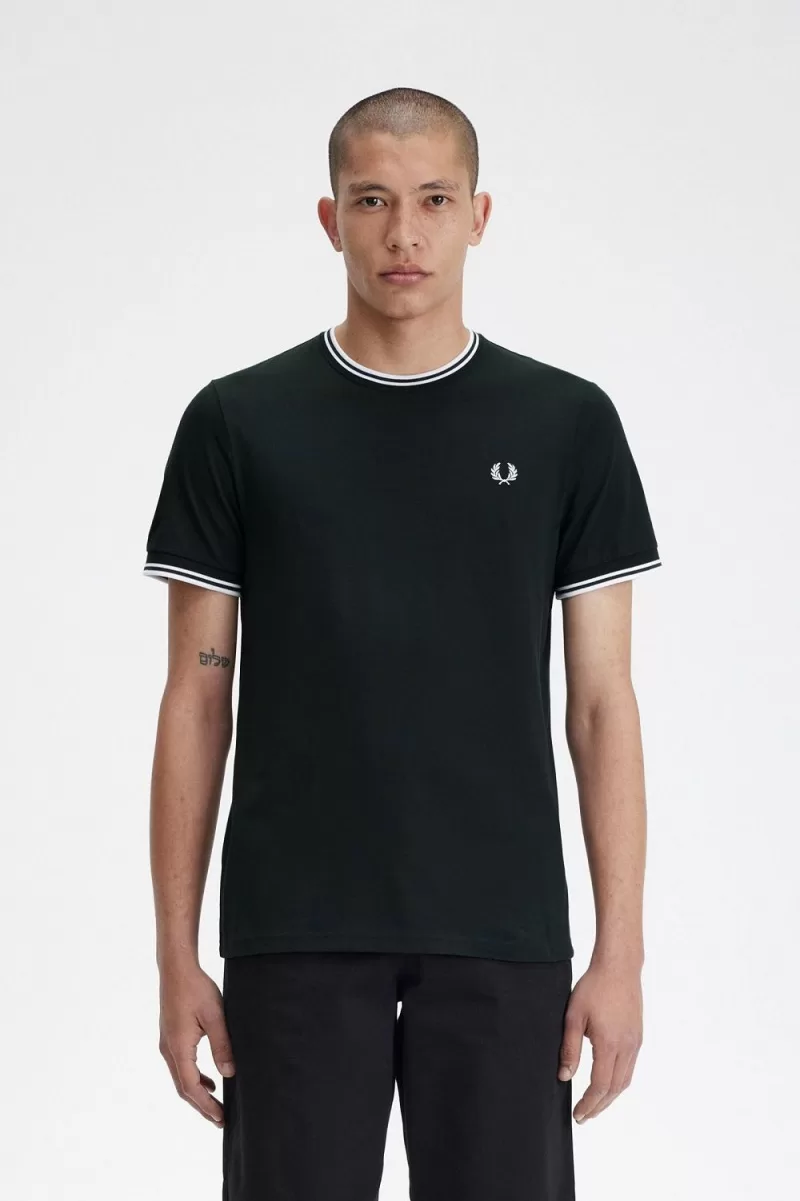 Fred Perry Twin Tipped Men’s T-Shirt Night Green Snow White | LWHGS8306