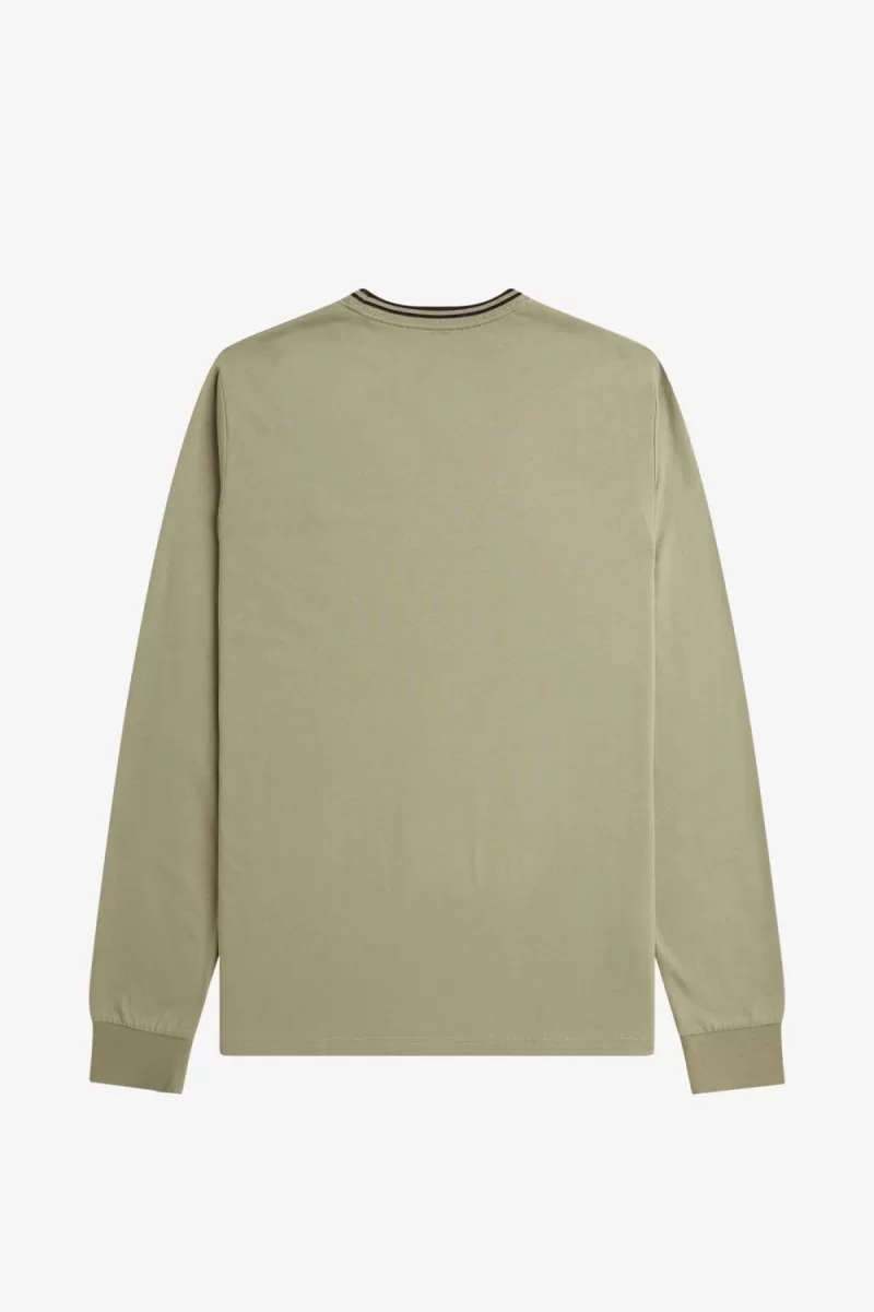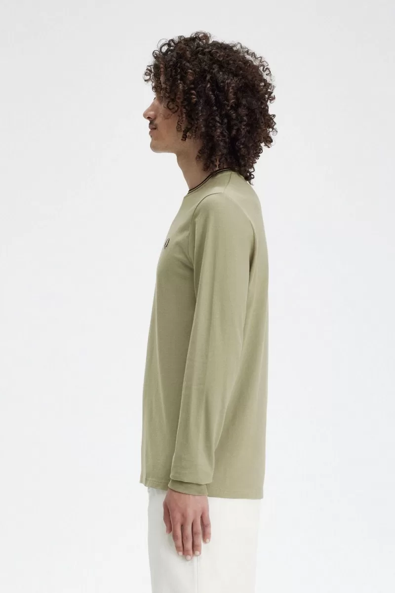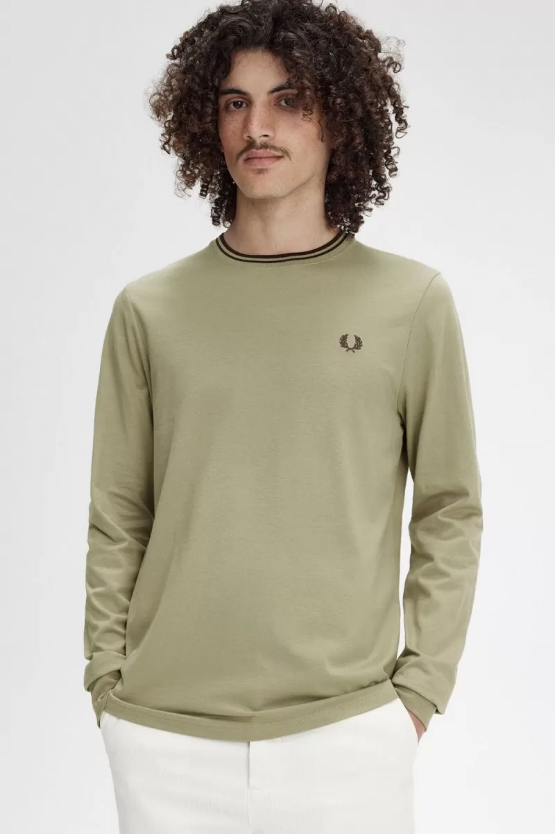 Fred Perry Taped Long Sleeve Men’s T-Shirt Black | ULNAH3758