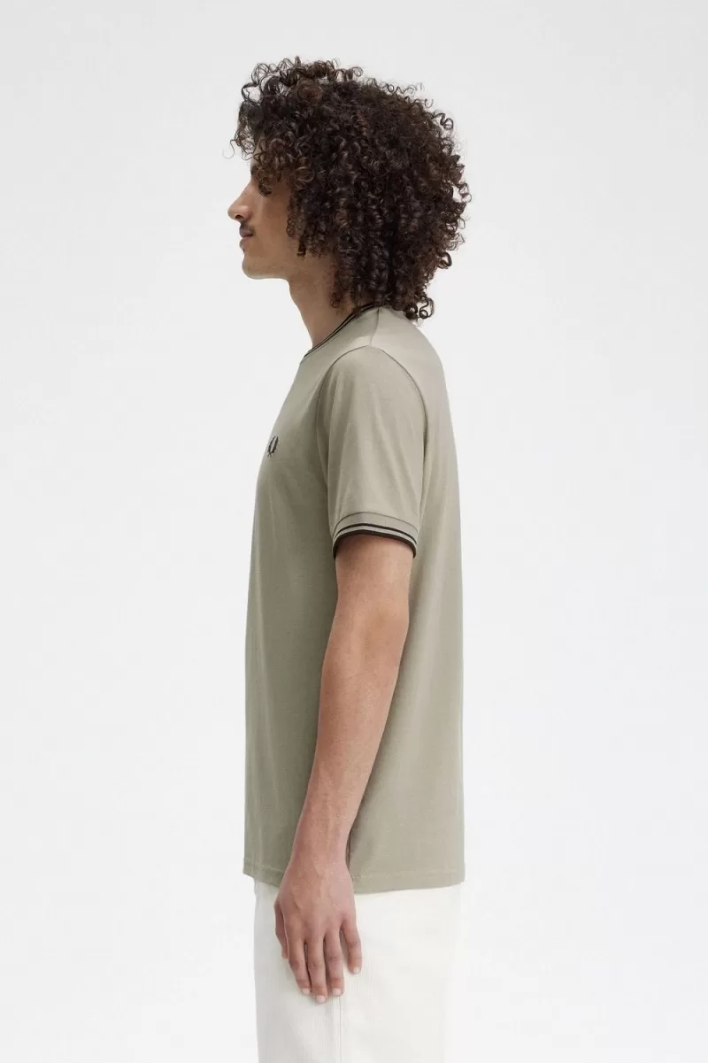 Fred Perry Twin Tipped Men’s T-Shirt Warm Grey Dark Red | ZHVNP4038