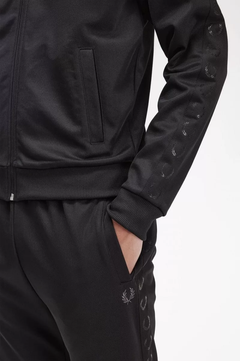 Our tricot track jacket with tonal tape over the shoulder and arm.