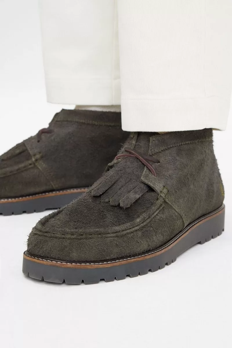 Introducing a brand new footwear style, the Kenney Mid is constructed from a heavily textured premium suede. The tough rubber commando sole features a storm welt, and the traditional tassel detail is removable for changing up the formality based on the outfit. Crafted in Portugal with leather lacing and a gimped collar, this is the desert boot’s slightly more sophisticated younger brother.