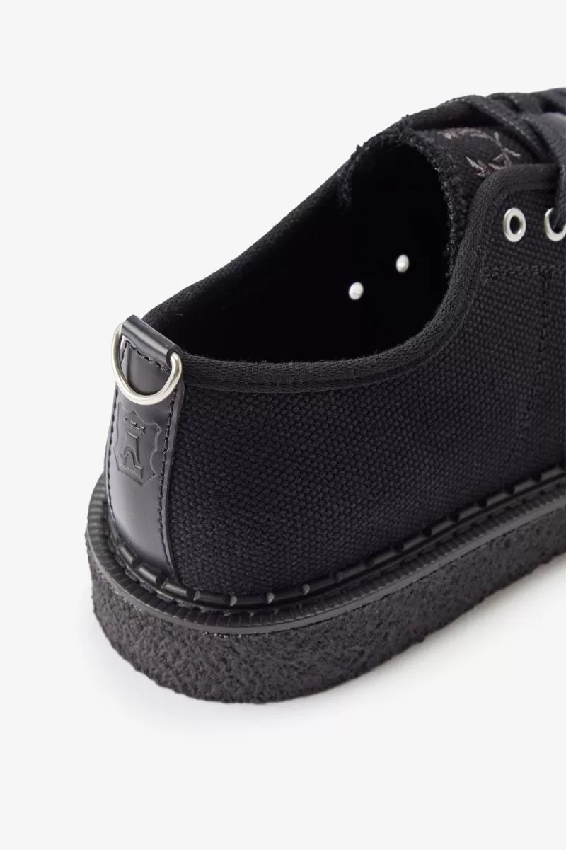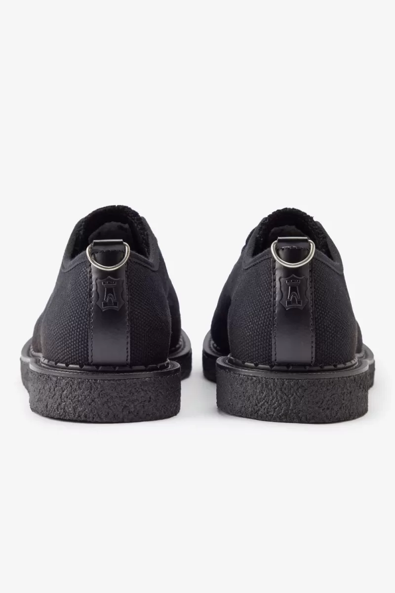 Heavy, coarse canvas upper / Leather toecap, vent panel and debossed back strip with metal D-ring / Decorative stitching detail / Chunky crepe outsole / Dual-branded in-sock, embroidered tongue and debossed heel tab