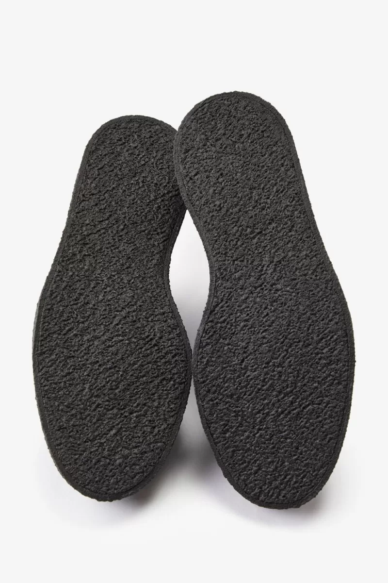 After making the first pair of crepe-sole creepers in 1949, the George Cox name has since become synonymous with the iconic design. Always crafted by skilled hands, with a brutal aesthetic embraced by generations of youth subculture. The Fred Perry x George Cox Monkey Shoe marks the interception of two iconic footwear archetypes: Fred’s sophisticated sportswear staple and the tough utility styling of the creeper. A statement of originality, crafted with exceptional details and ready-for-anything materials.