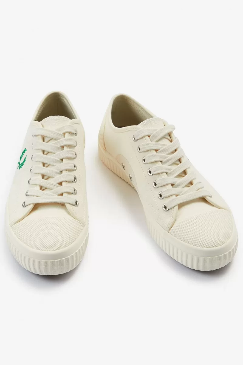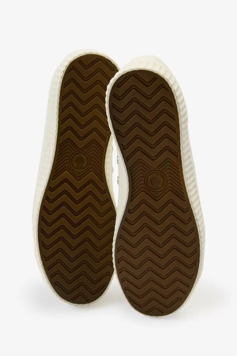A tougher take on our classic plimsolls, the Hughes merges sportswear with the subcultural uniform. Designed with a chunky ribbed rubber sole and textured heel and toe reinforcements, features are borrowed from work and utility-wear. Fred Perry through and through.