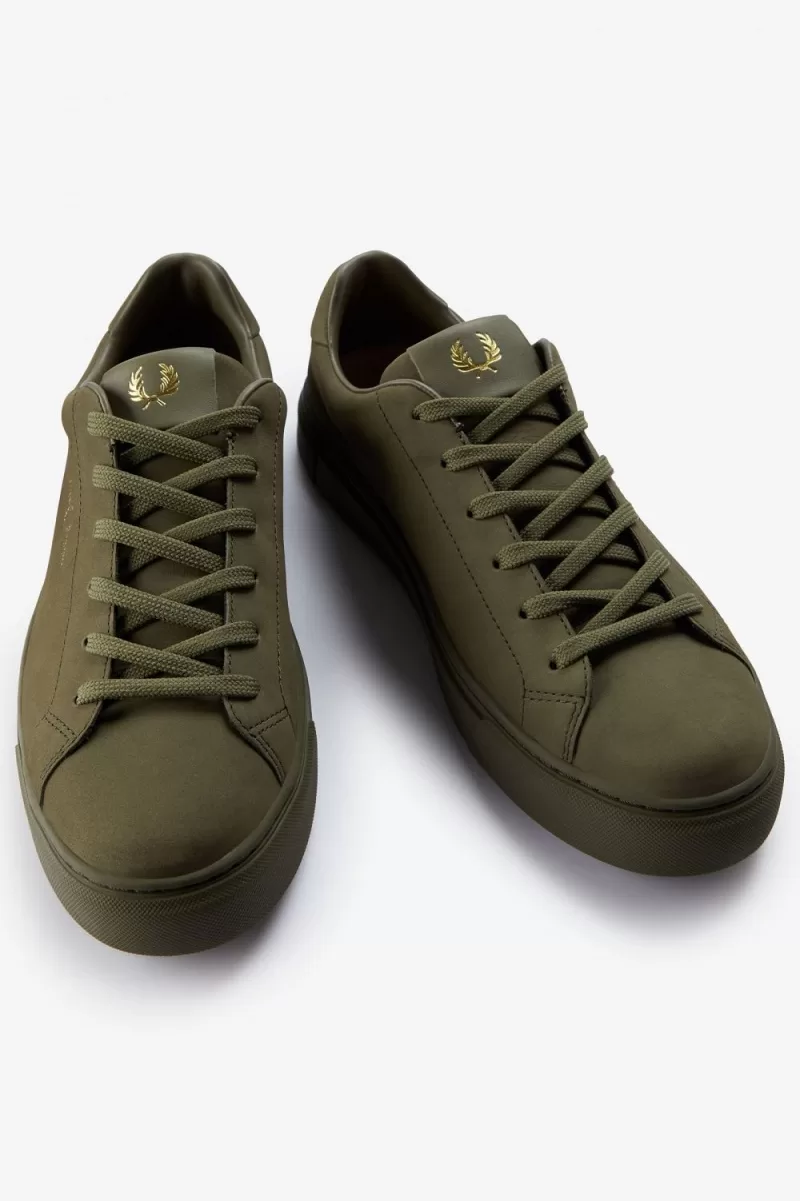 Oiled nubuck upper / Oiled nubuck heel tab / Rubber sole / Gold foil debossed Fred Perry Laurel Wreath text on quarter / Gold foil debossed 16 leaf Laurel on tongue label