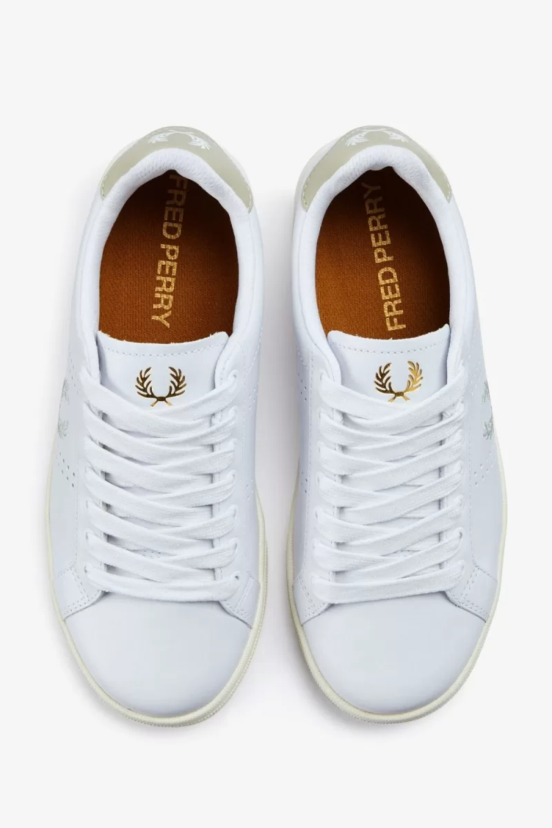 The humble trainer has come a long way in its time. Once a functional piece of sporting kit, now a statement piece, an accessory, an expression of identity.The B721 leather stays true to sports detailing, but enjoys some elevation with Fred Perry’s sign off on the sole, and the famous Laurel Wreath expressed in print, gold foil, and deboss. The tennis shoe of champions.