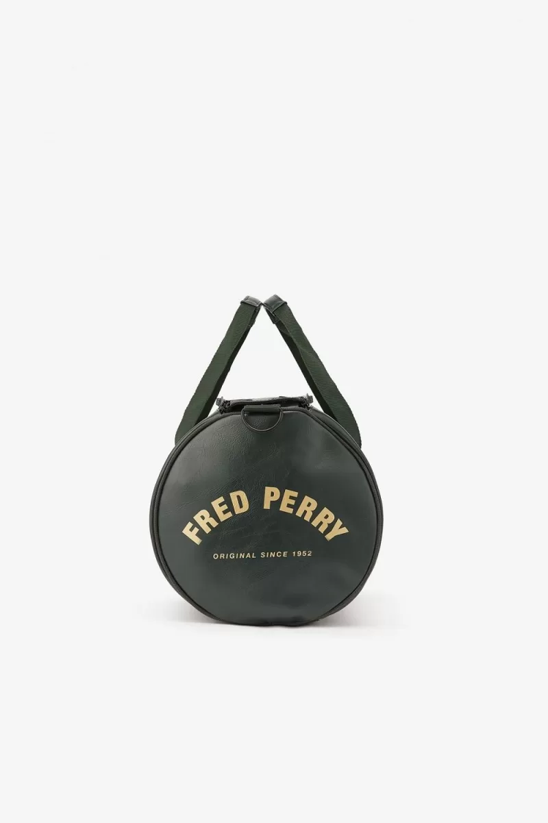 The classic Fred Perry barrel bag in durable PU, designed with tonal detailing. Fitted with strong webbing handles, a zipped compartment at one end and signature arch branding.